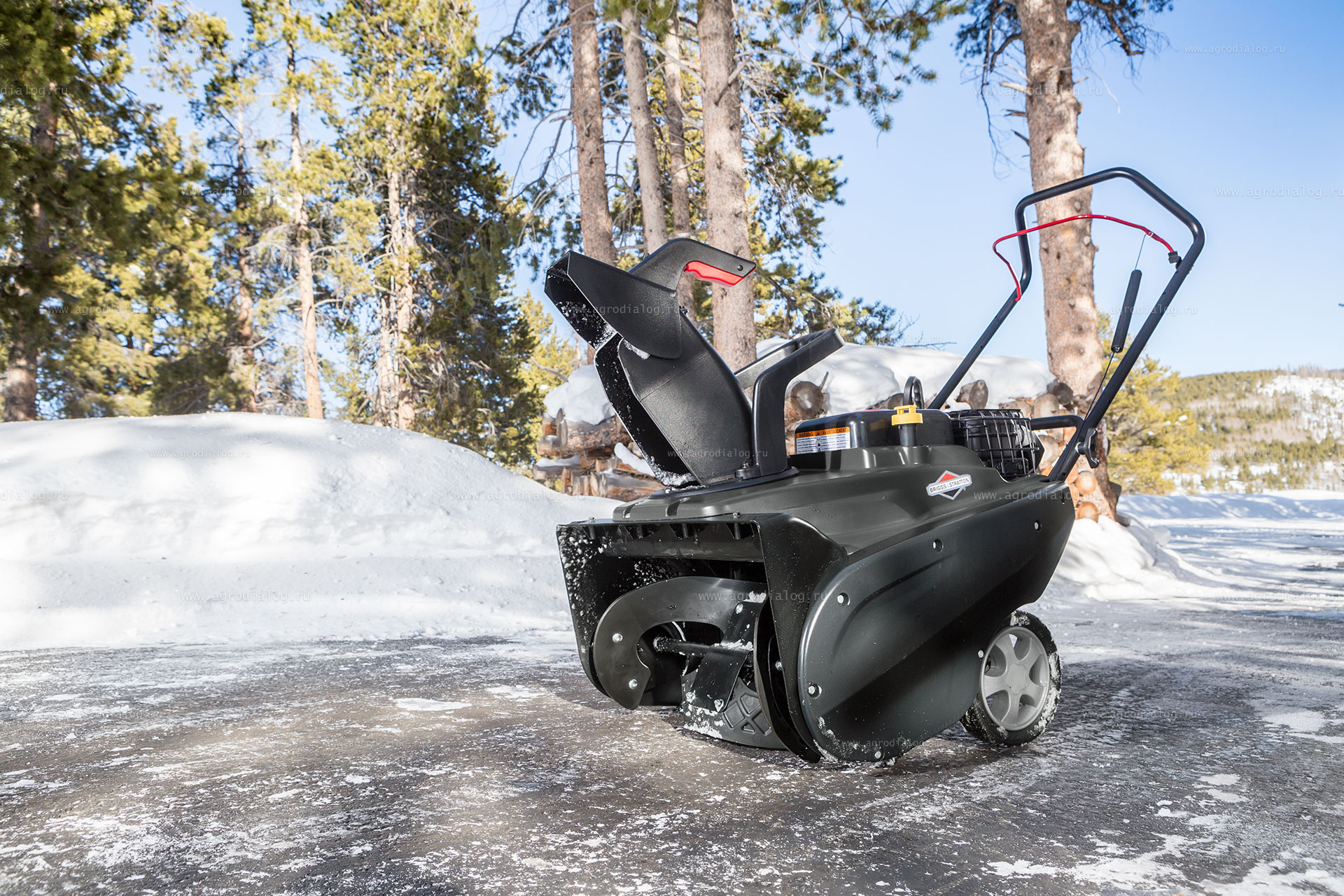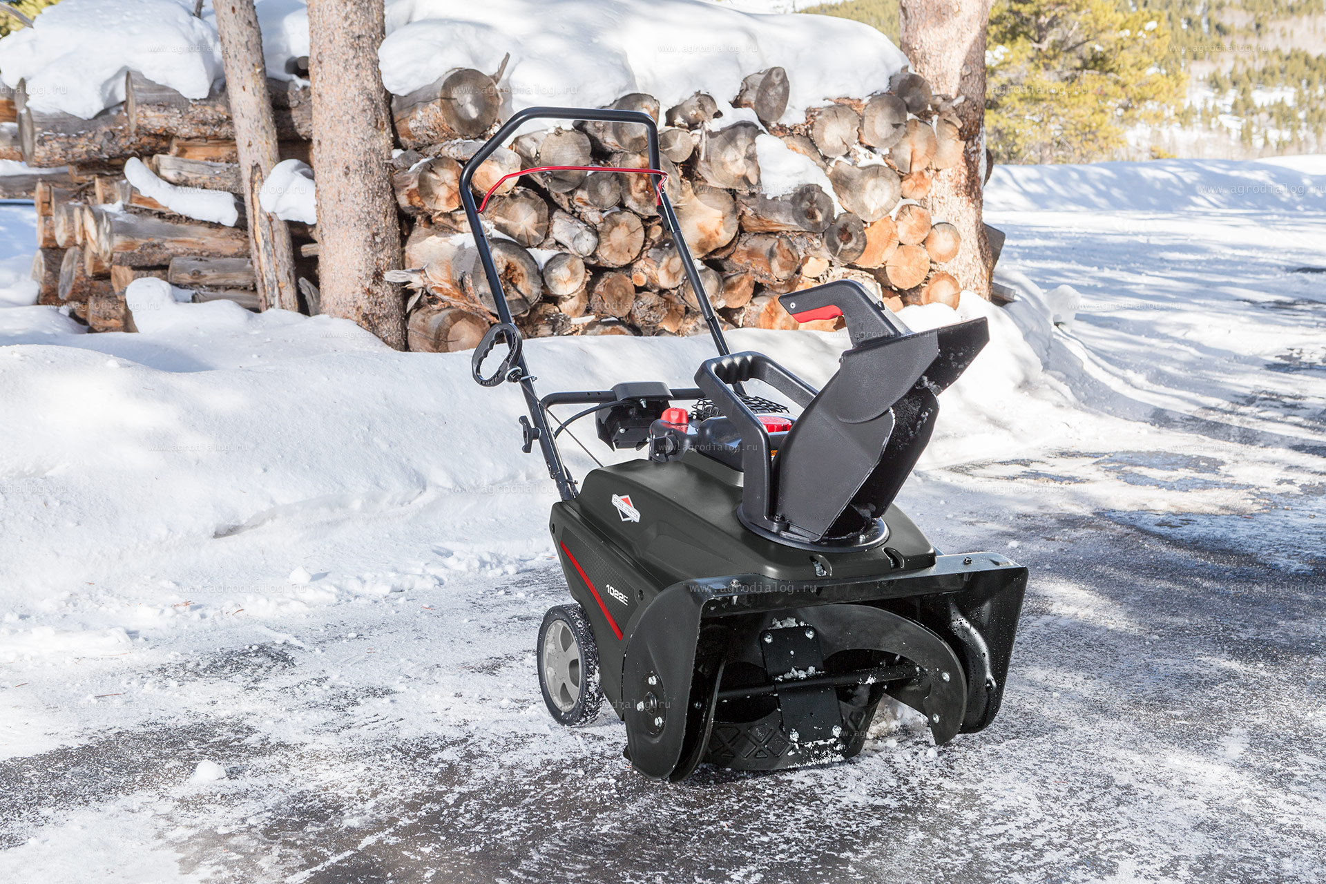 - Бензиновый снегоуборщик Briggs&Stratton 1022 E движется вперед с помощью вращения собственного шнека, который при этом собирает и отбрасывает снег.
