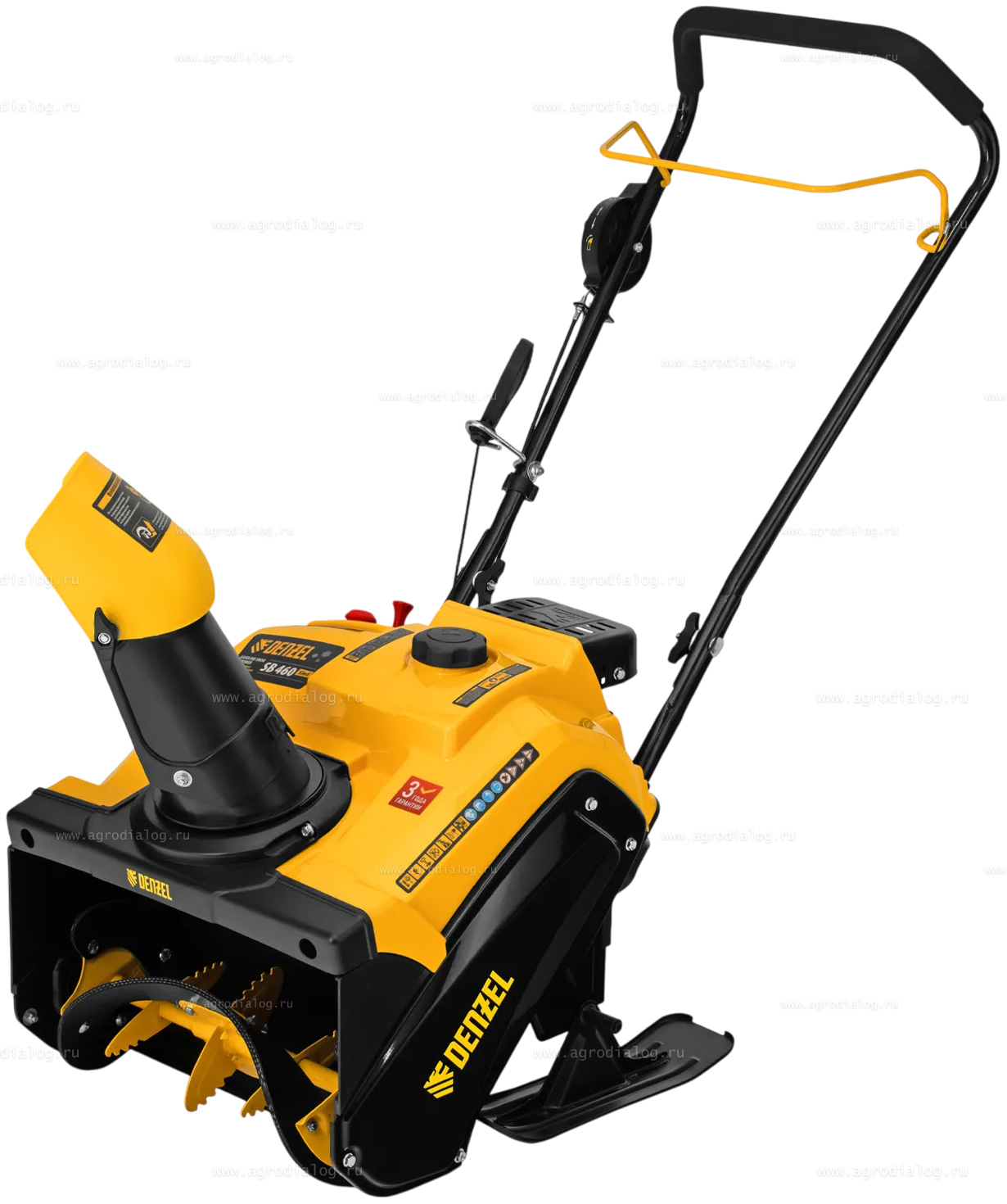 - Бензиновый снегоуборщик DENZEL SB 460 Sled снабжен опорными лыжами, которые обеспечивают отличную проходимость на любых типах убираемого снега.