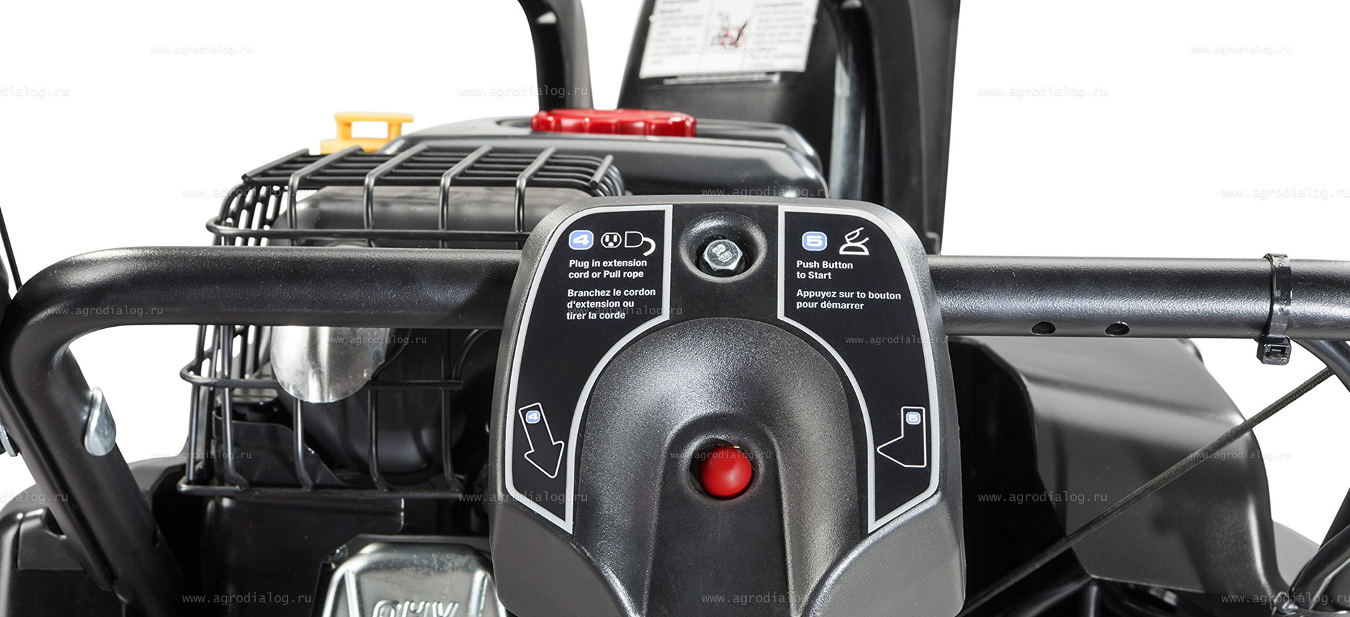 - Электрический стартер, подключаемый к стандартной электросети 220В, гарантирует легкий запуск двигателя при низких температурах до -30 °С. Не может быть ничего проще – просто подключите удлинитель к штекеру и нажмите на красную кнопку для запуска двигателя.