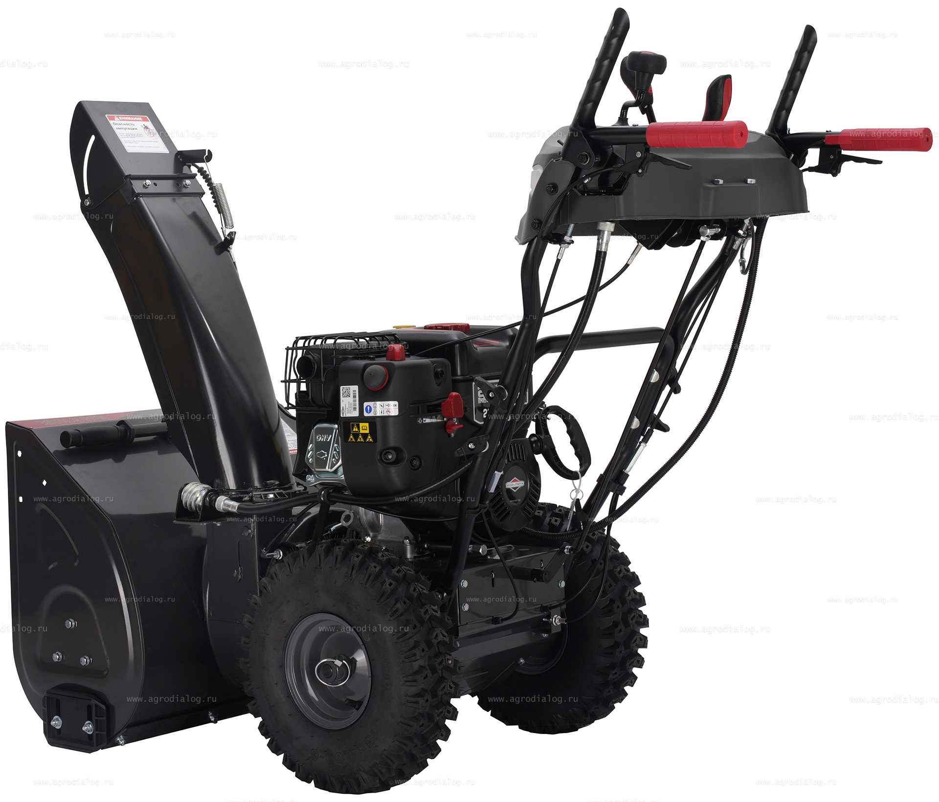- Free hand control – блокировка ручки управления позволяет освободить одну из рук оператора, когда необходимо переключить скорость или отрегулировать направление выброса снега без остановки снегоуборщика.