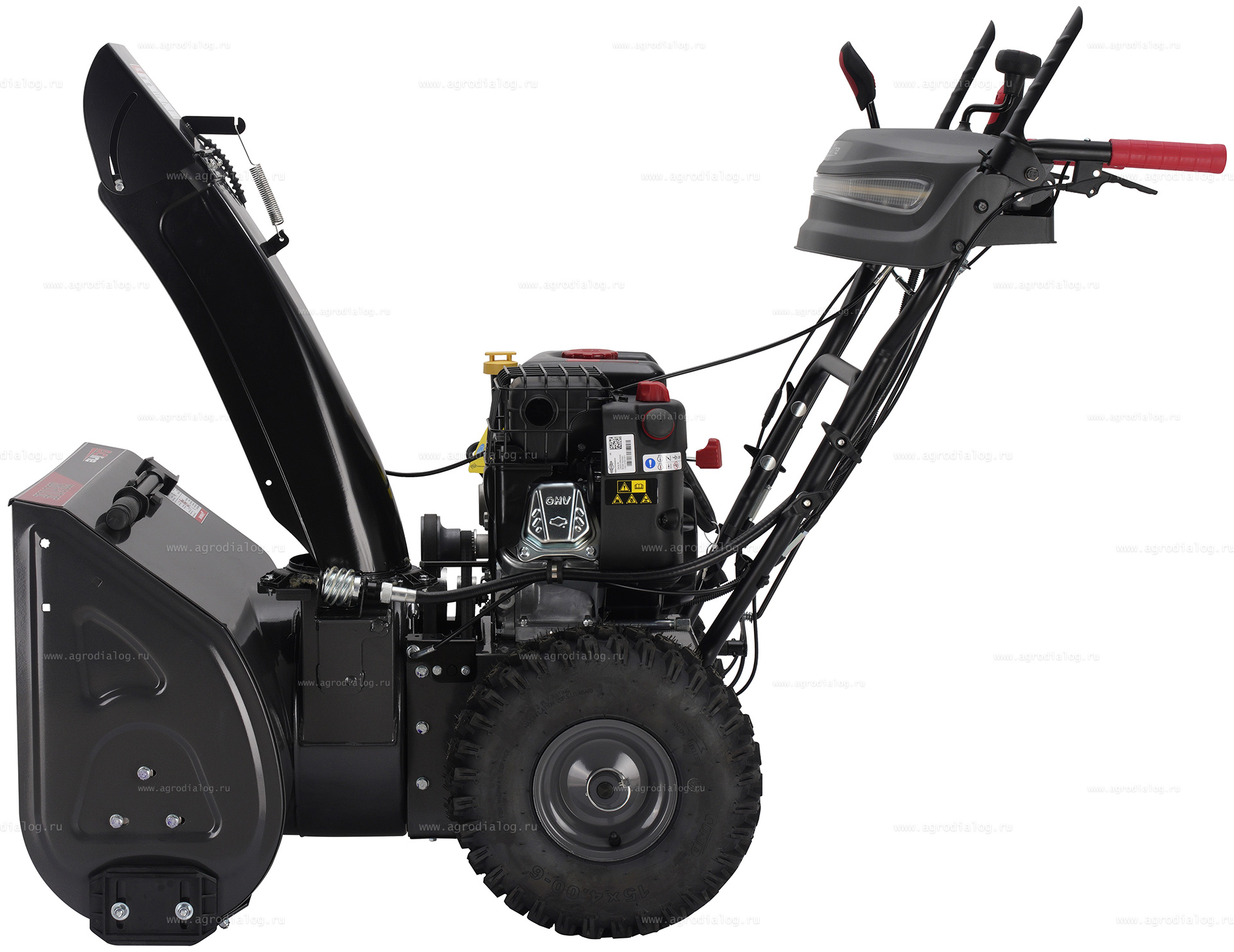 - Для удобства работы и безопасности в тёмное время суток бензиновый снегоуборщик оборудован светодиодной фарой.