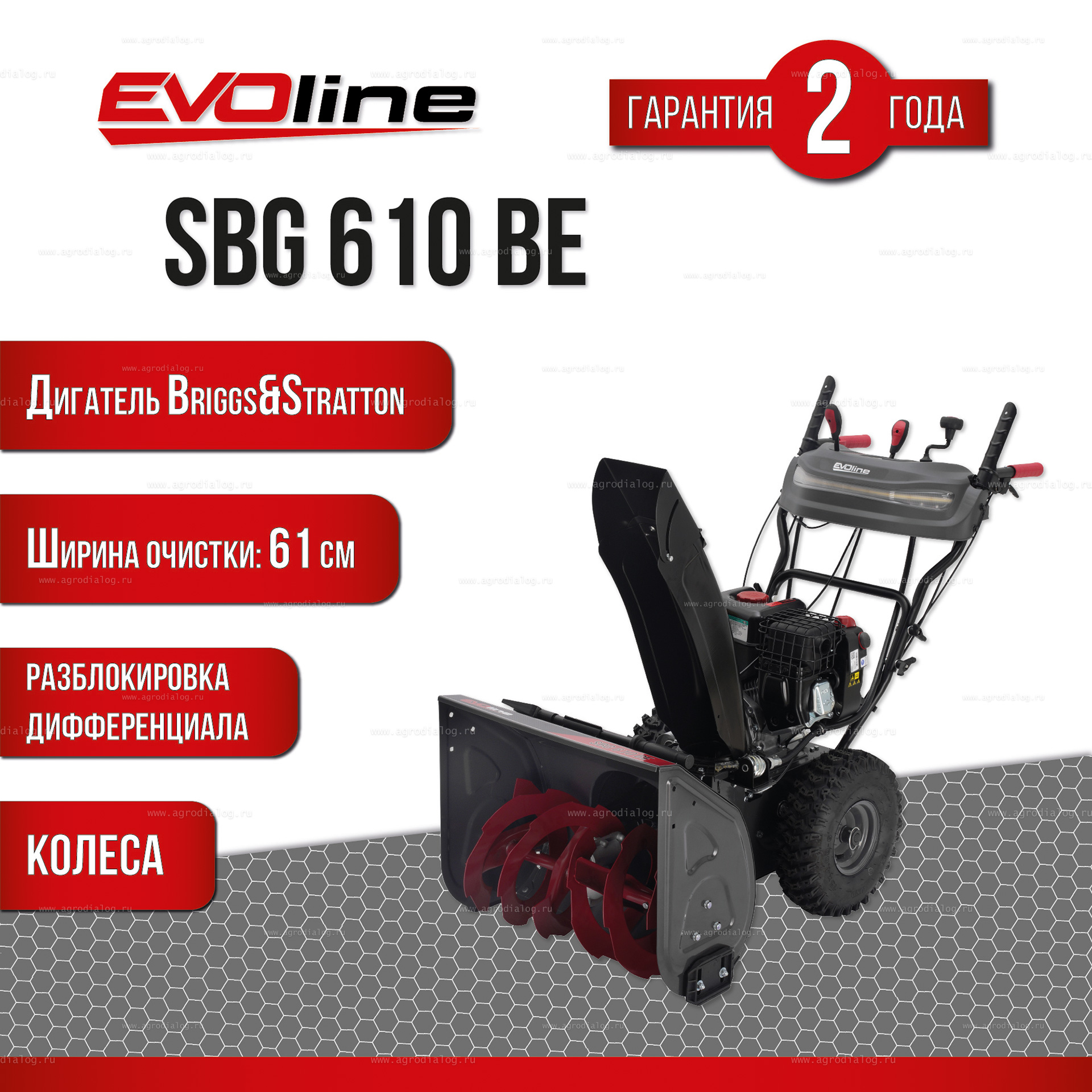 - Бензиновый снегоуборщик EVOline SBG 610 BE оснащен двухступенчатой системой уборки снега обеспечивающей эффективную расчистку с превосходным результатом.