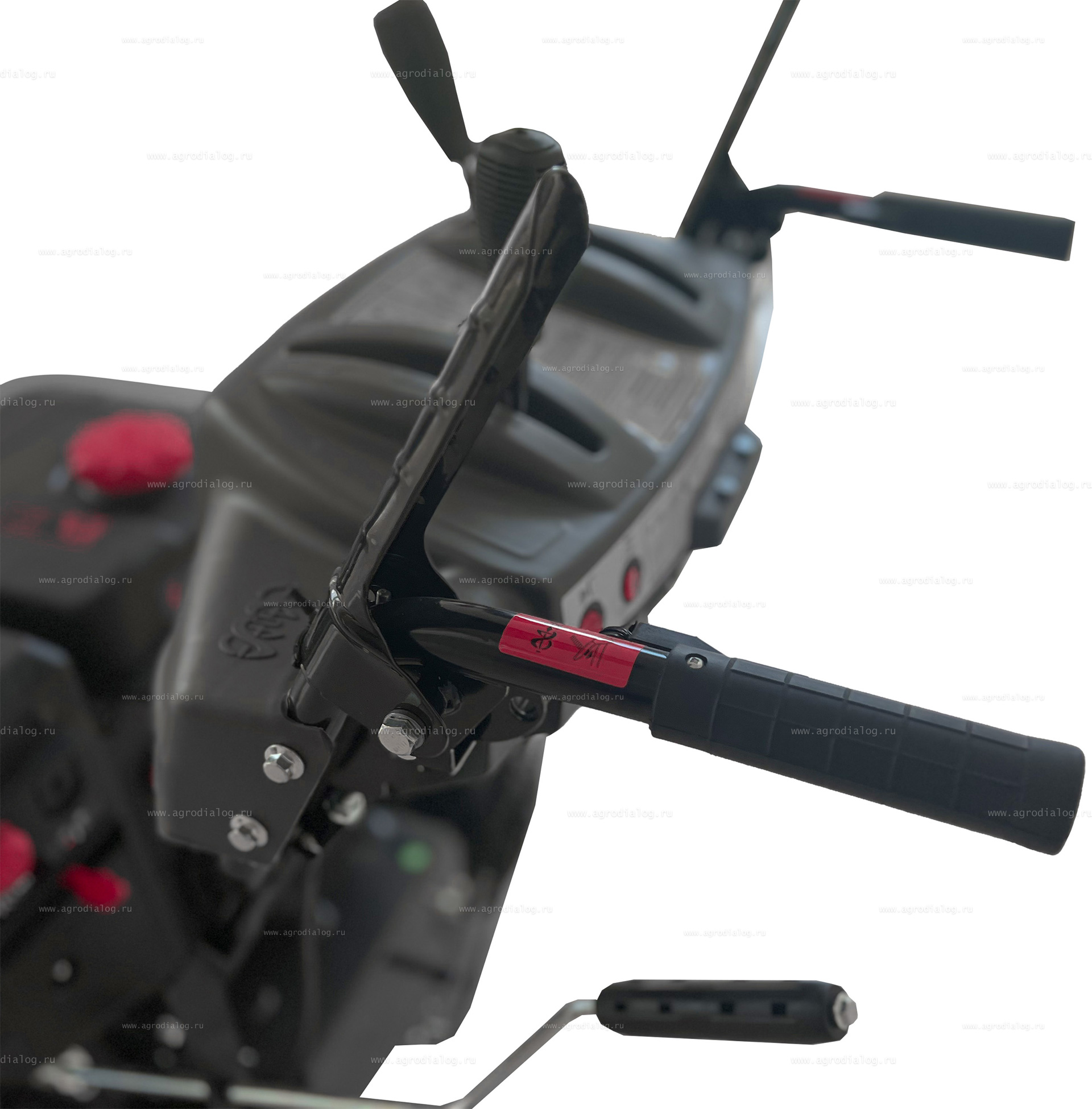 - Запатентованная система Free hand control – блокировка ручки управления позволяет освободить одну из рук оператора, когда необходимо переключить скорость или отрегулировать направление выброса снега без остановки снегоуборщика.