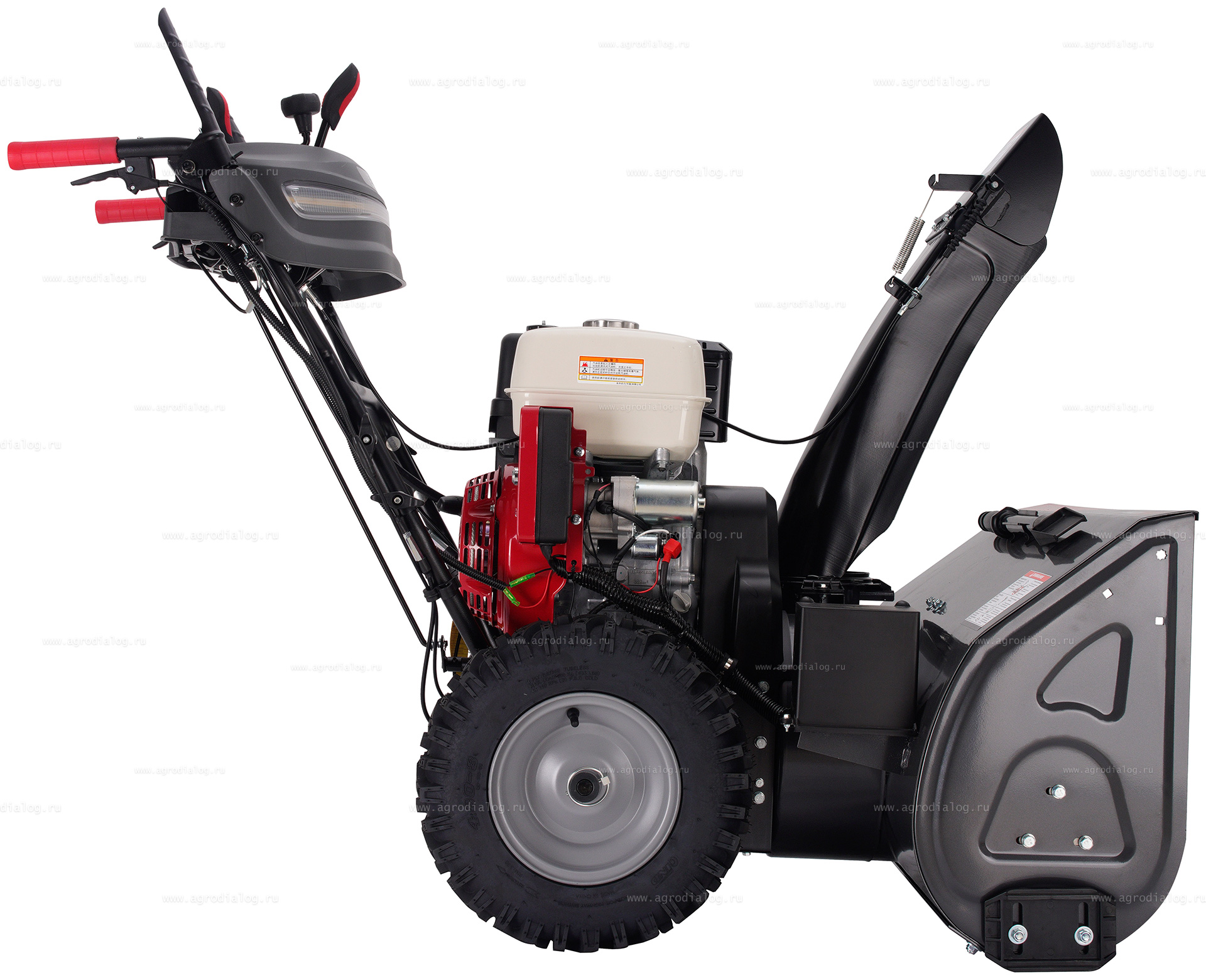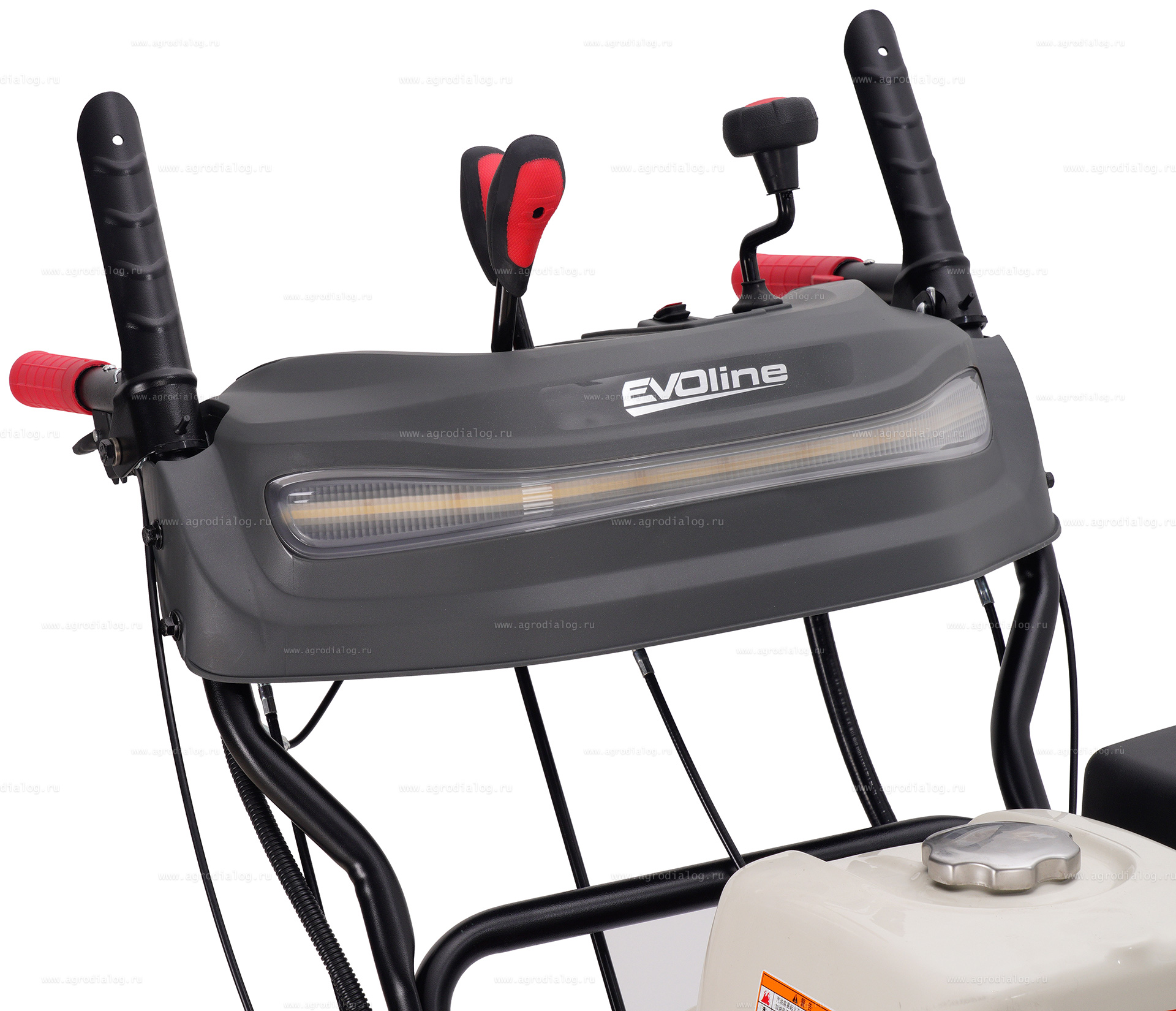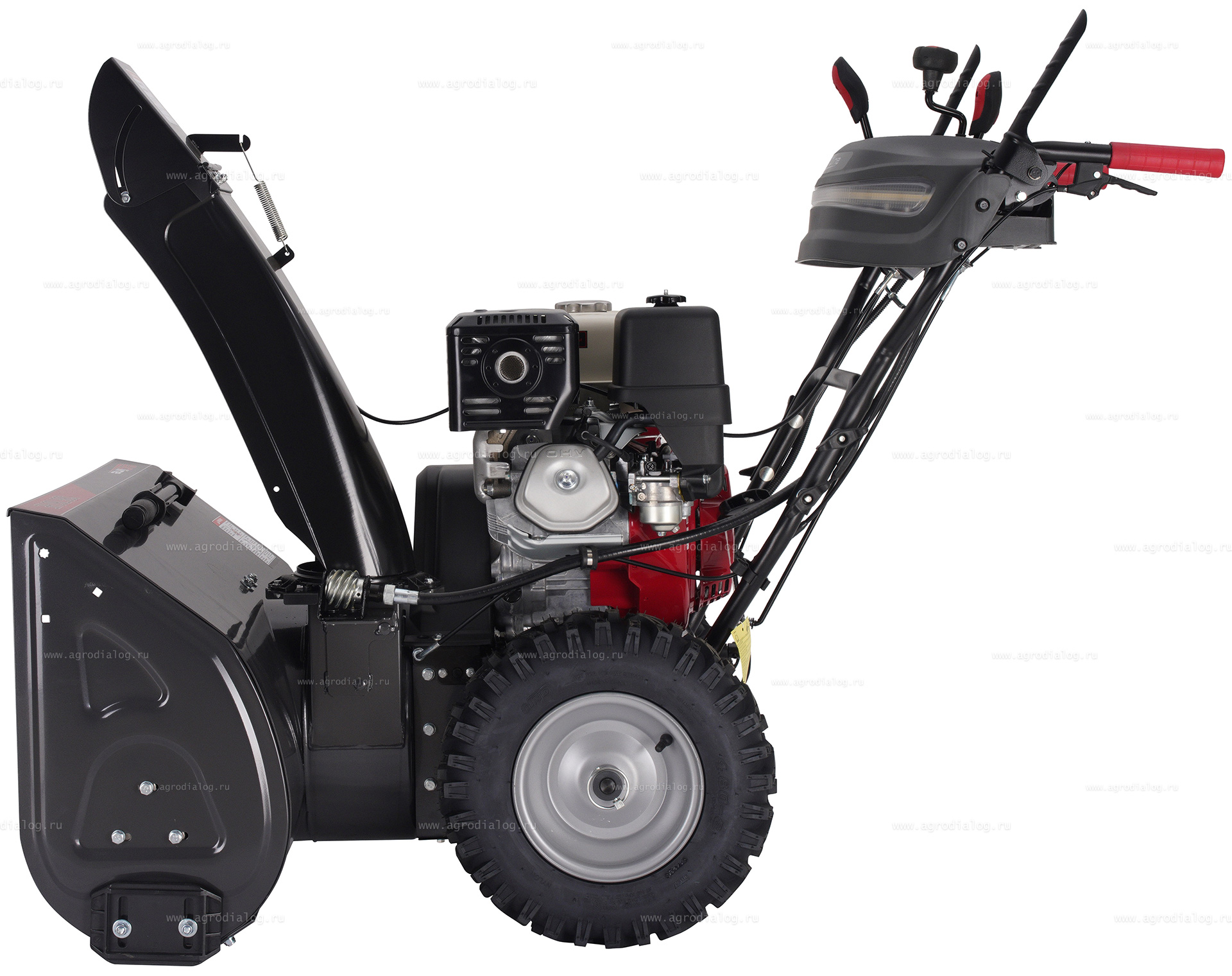 - Для удобства работы и безопасности в тёмное время суток бензиновый снегоуборщик оборудован светодиодной фарой.