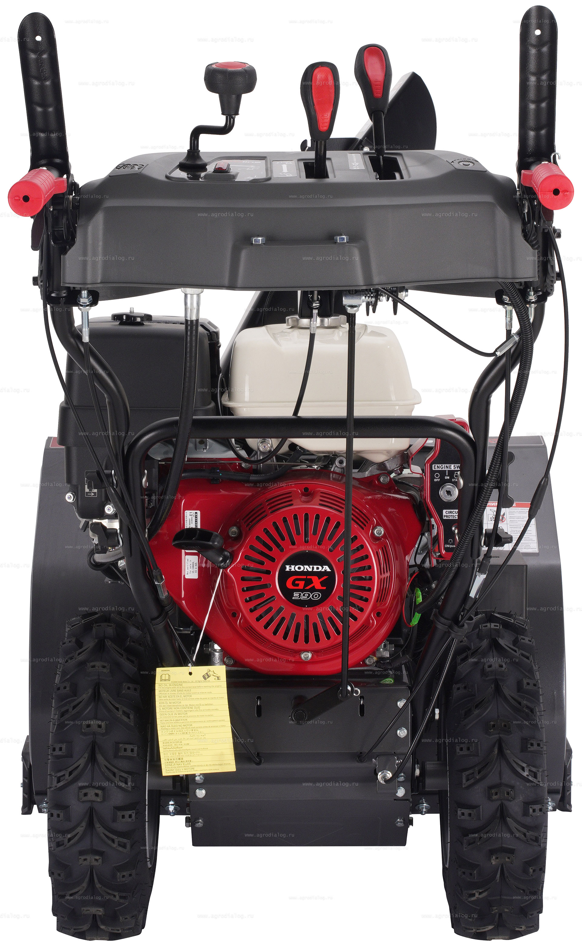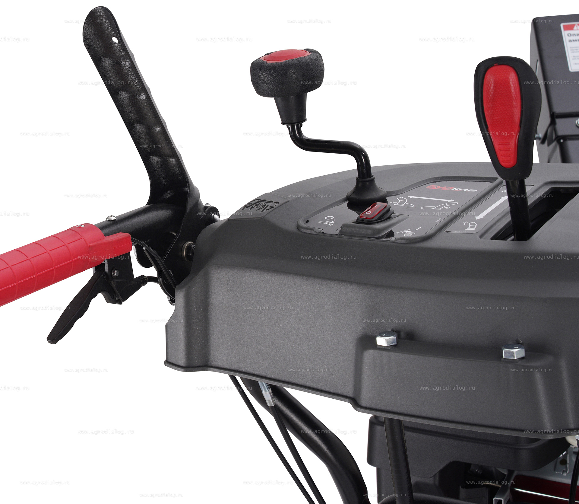 - Free hand control – блокировка ручки управления позволяет освободить одну из рук оператора, когда необходимо переключить скорость или отрегулировать направление выброса снега без остановки снегоуборщика.