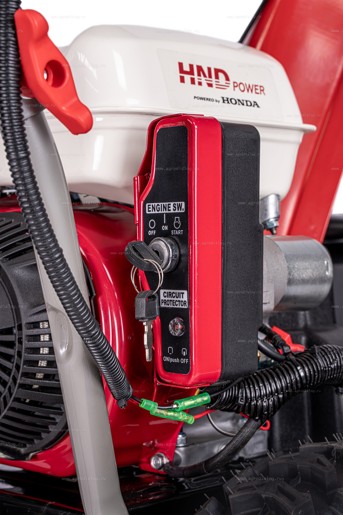 - Электрический запуск позволяет легко завести холодный двигатель простым поворотом ключа, питается от встроенного аккумулятора 12V.
