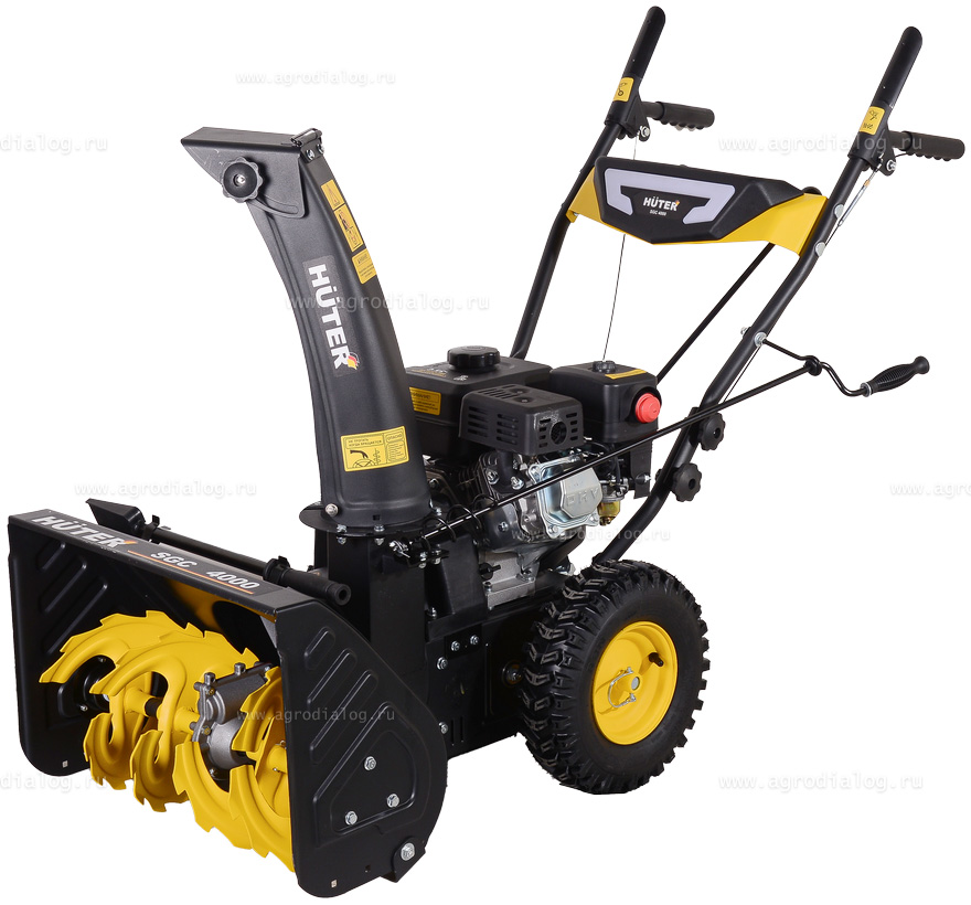 - Бензиновый снегоуборщик Huter SGC 4000 удобен в использовании и обеспечивает качественную уборку территорий с разными дорожными покрытиями.