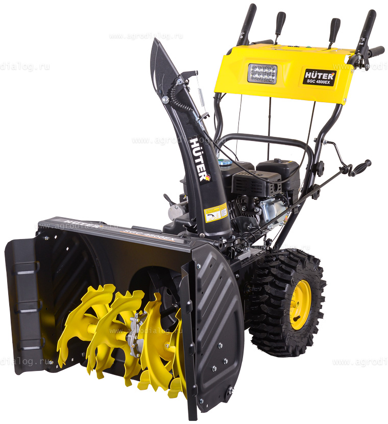- Бензиновый снегоуборщик Huter SGC 4800EX удобен в использовании и обеспечивает качественную уборку территорий с разными дорожными покрытиями.