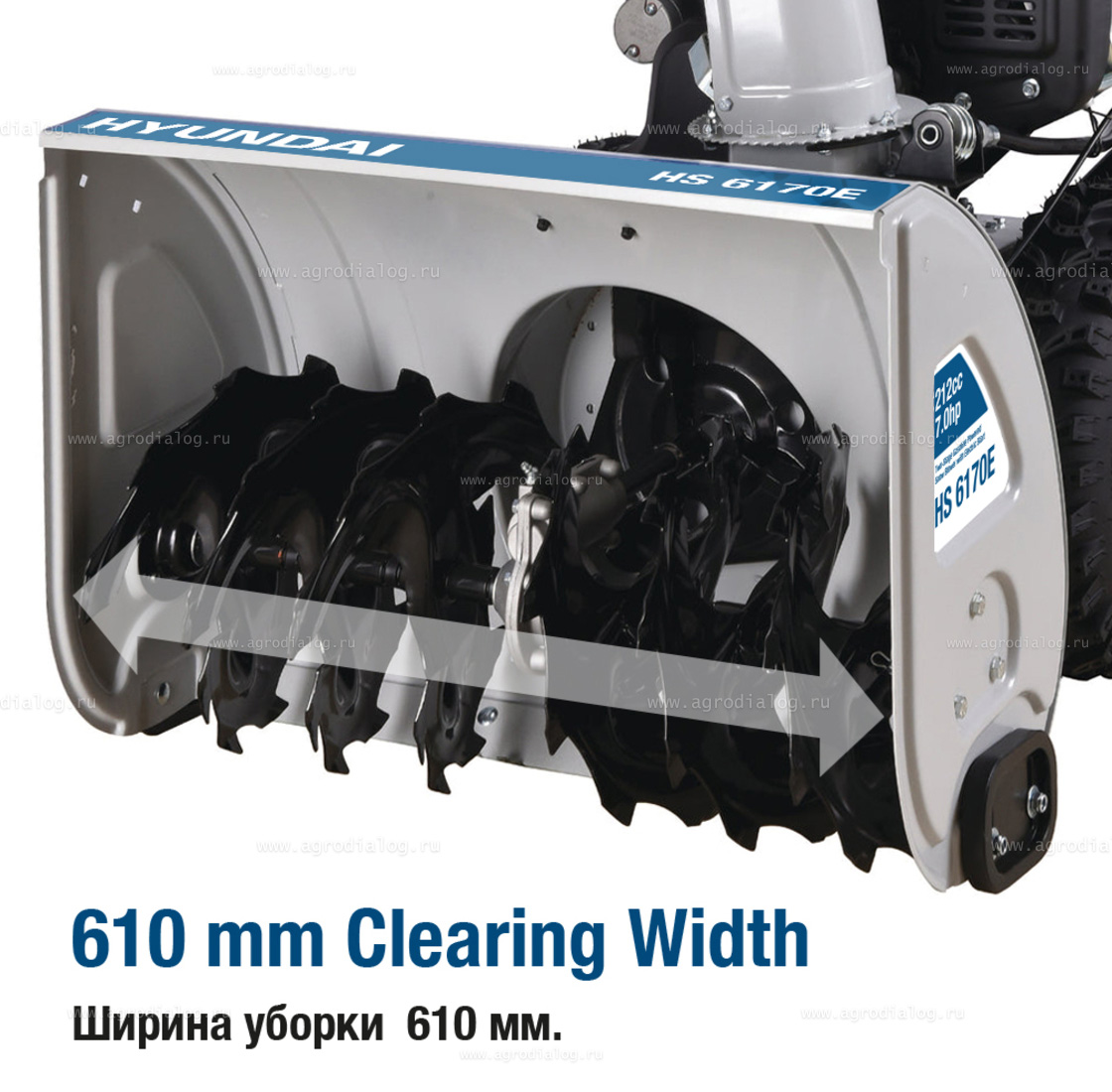 - Бензиновый снегоуборщик Hyundai HS 6170E оснащен двухступенчатой системой уборки снега обеспечивающей эффективную расчистку с превосходным результатом.
