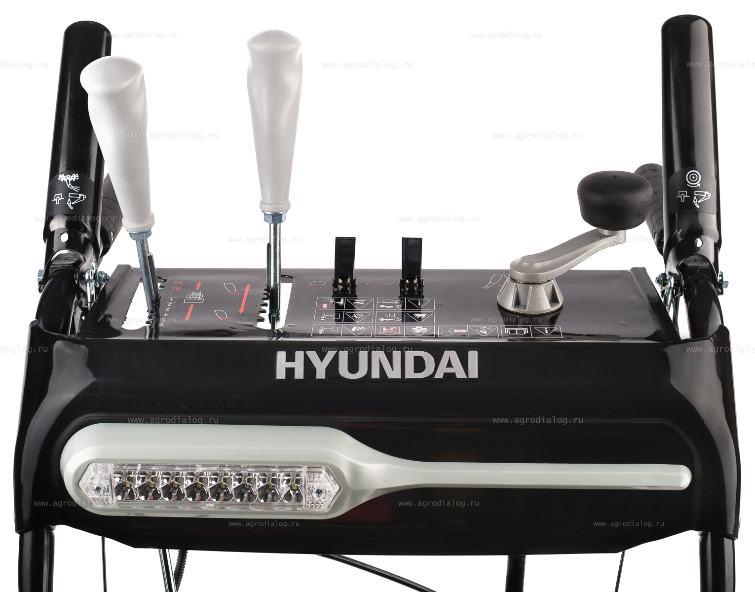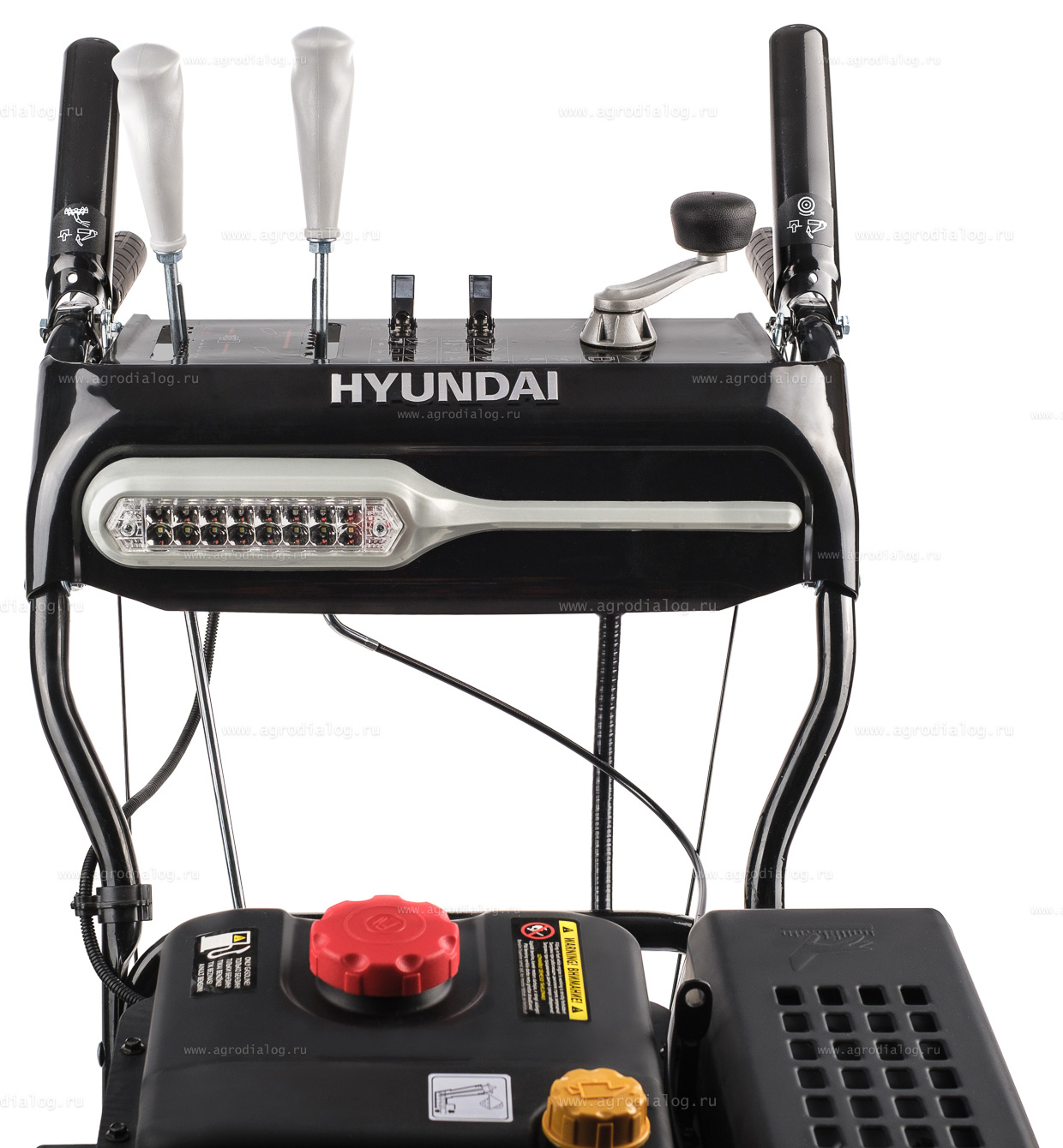 - Для удобства работы и безопасности в тёмное время суток, снегоуборщик оборудован светодиодной фарой.