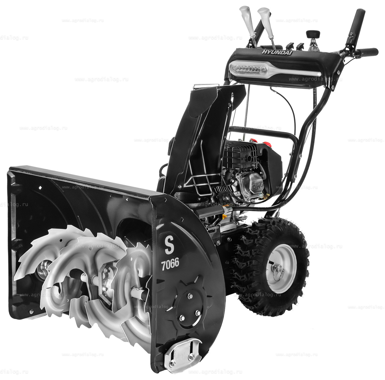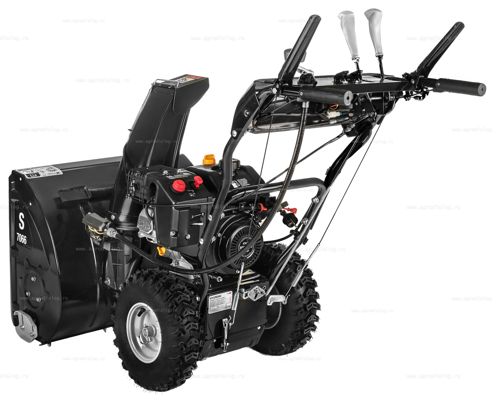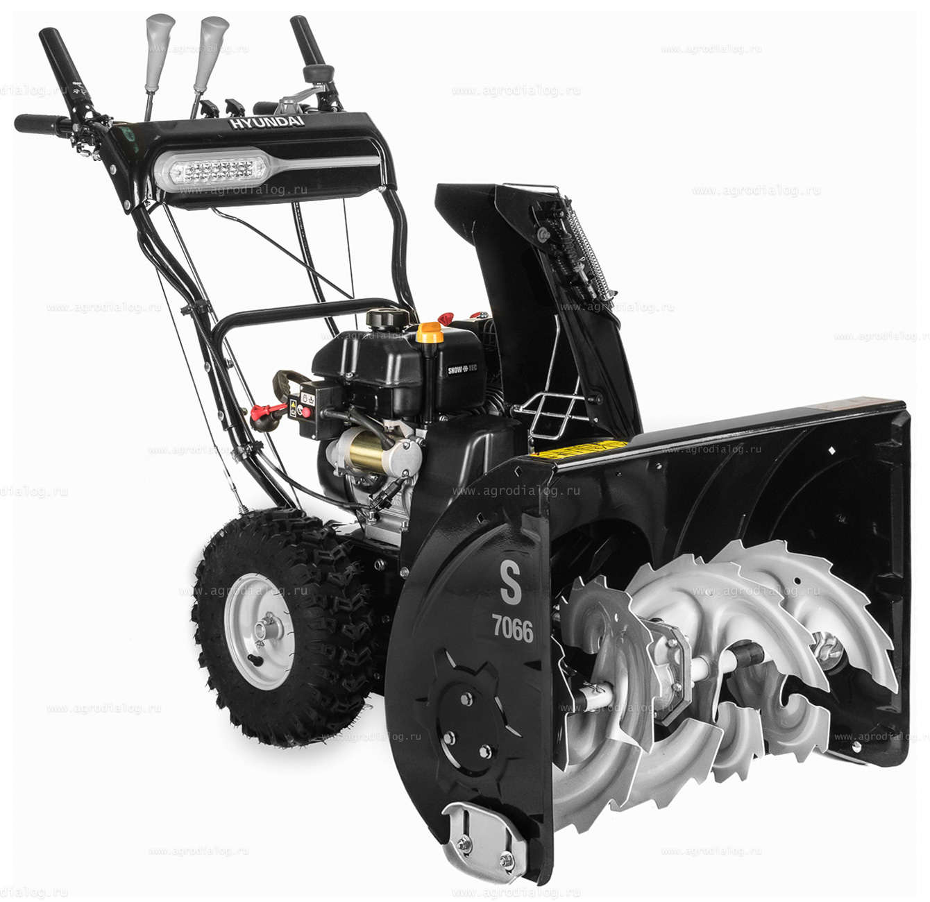 - Бензиновый снегоуборщик Hyundai S 7066 удобен в использовании и обеспечивает качественную уборку территорий с разными дорожными покрытиями.