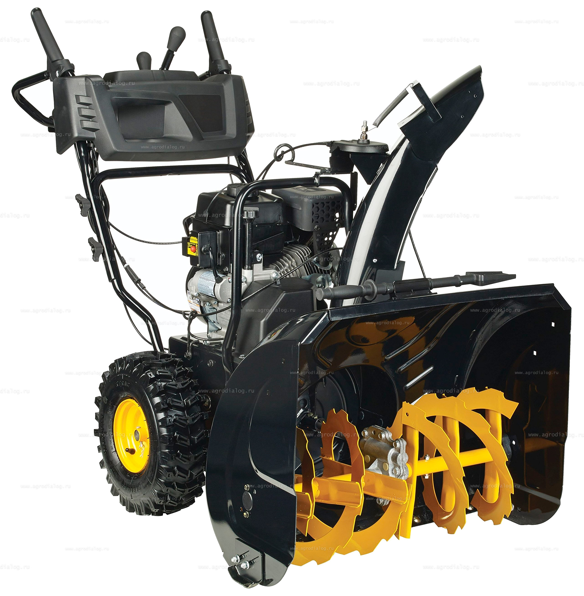 - Широкие пневматические колеса со специальным протектором резины, облегчают проходимость и маневрирование на заснеженной поверхности.