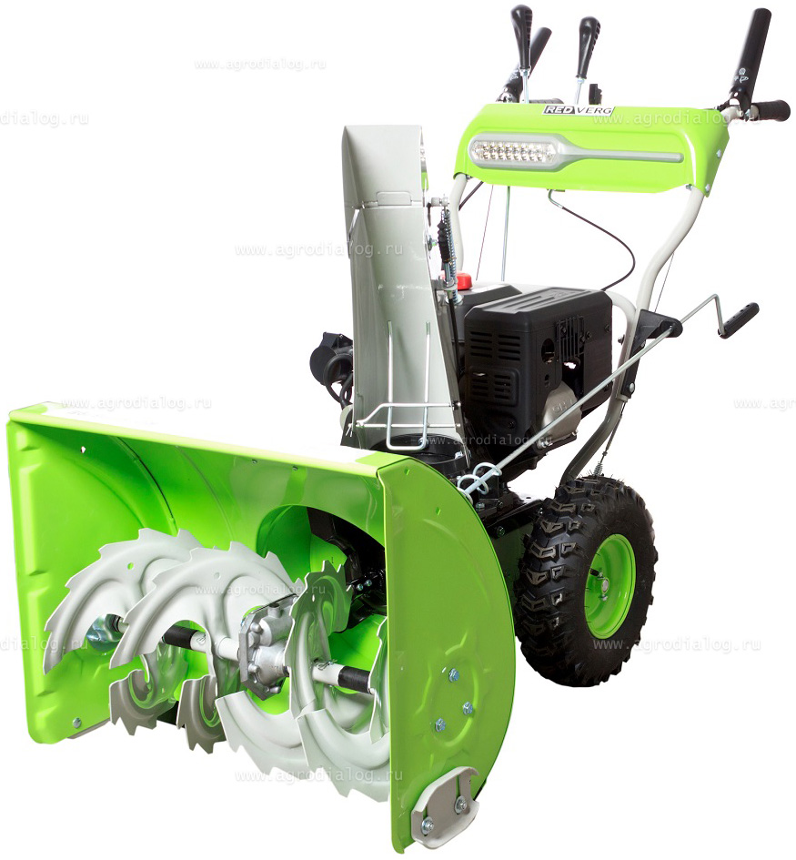 - Бензиновый снегоуборщик REDVERG RD-SB66/9E снабжен широкими пневматическими колесами со специальным протектором резины, облегчающим проходимость на заснеженной и обледенелой поверхности.