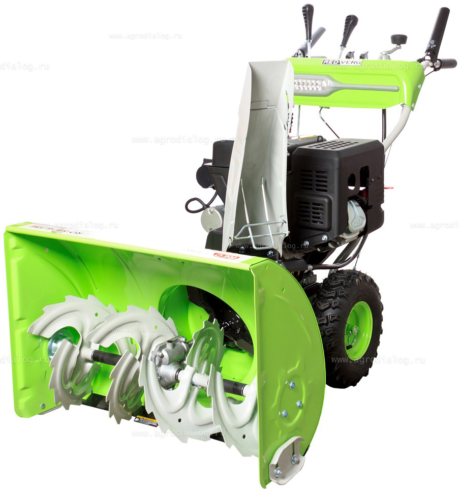 - Бензиновый снегоуборщик REDVERG RD-SB76/13E снабжен широкими пневматическими колесами со специальным протектором резины, облегчающим проходимость на заснеженной и обледенелой поверхности.