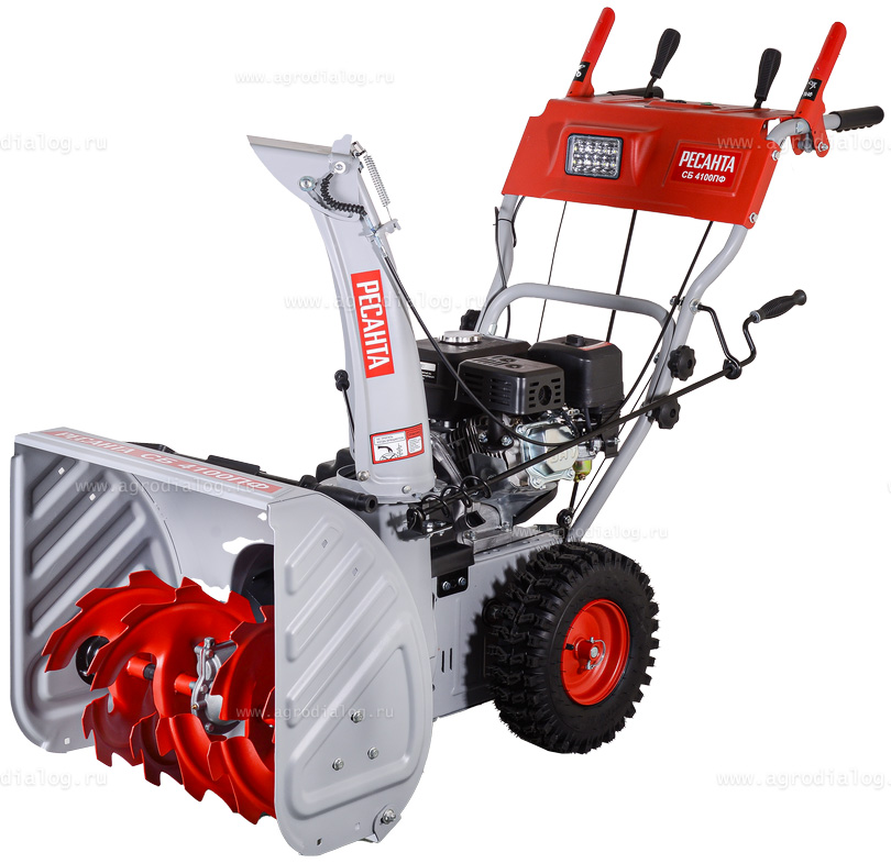 - Для удобства работы и безопасности в тёмное время суток бензиновый снегоуборщик Ресанта СБ 4100ПФ оборудован LED фарой.