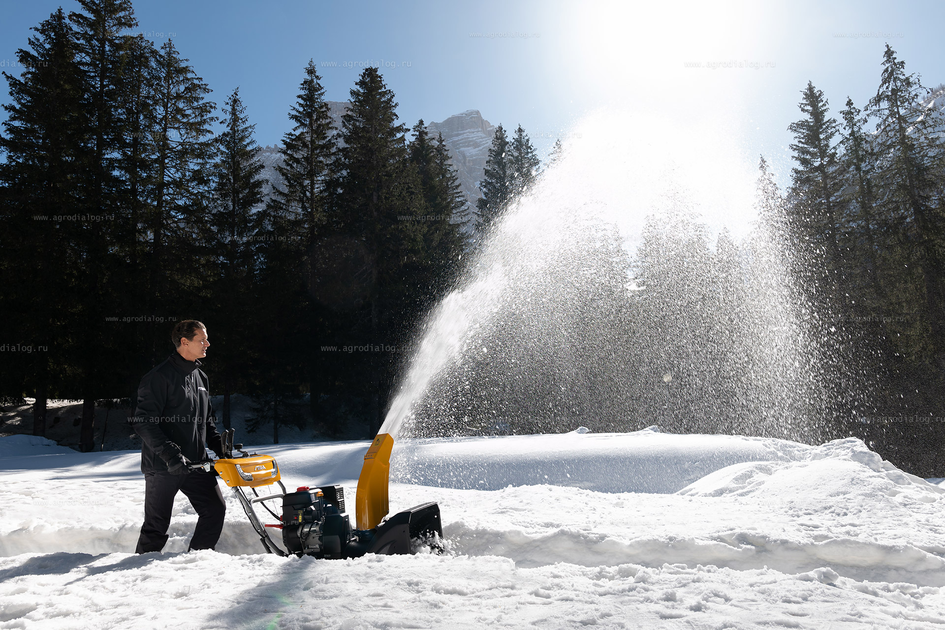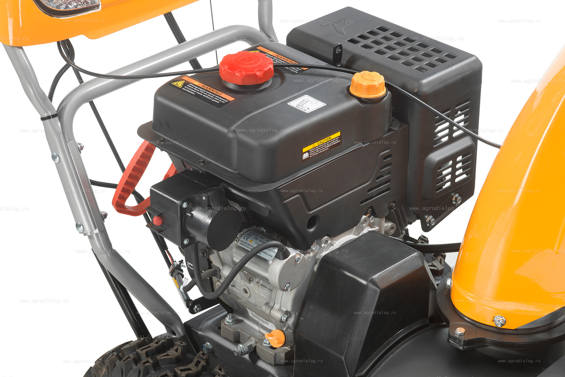 - Single hand control – блокировка ручки управления позволяет освободить одну из рук оператора, когда необходимо переключить скорость или отрегулировать направление выброса снега без остановки снегоуборщика.