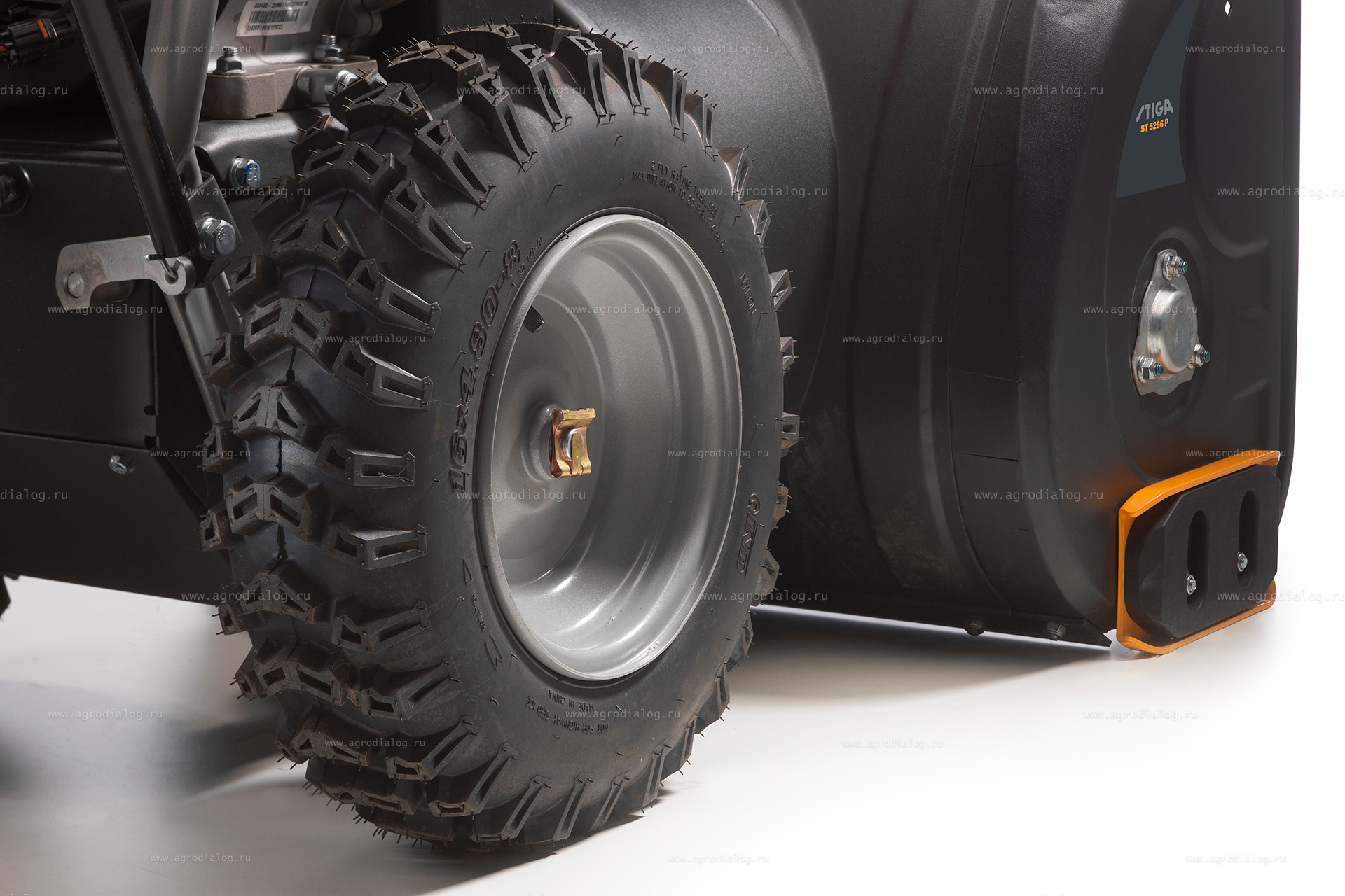 - Бензиновый снегоуборщик Stiga ST 5266 P снабжен широкими пневматическими колесами со специальным протектором резины, облегчающим проходимость на заснеженной и обледенелой поверхности.