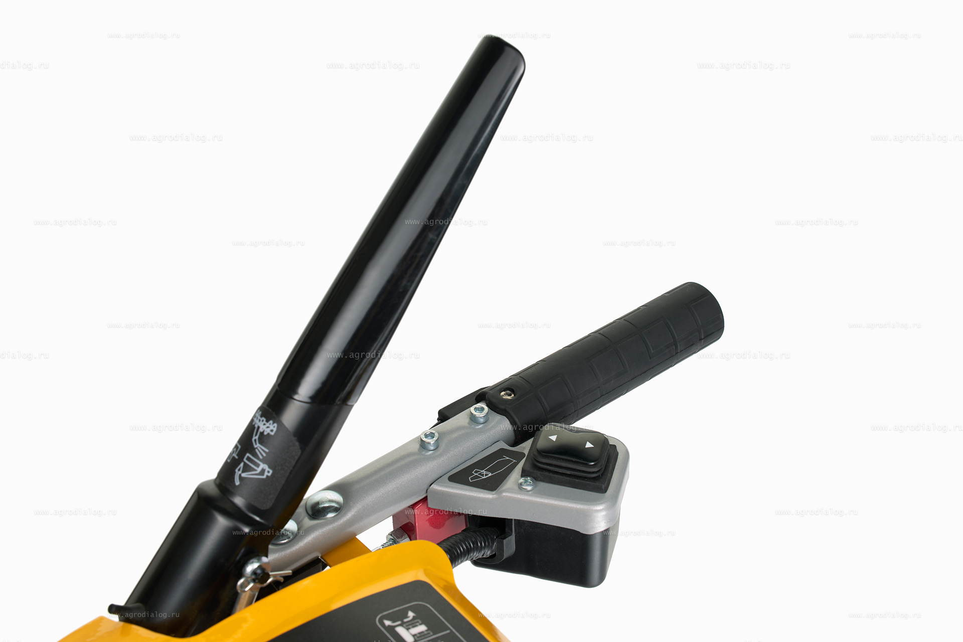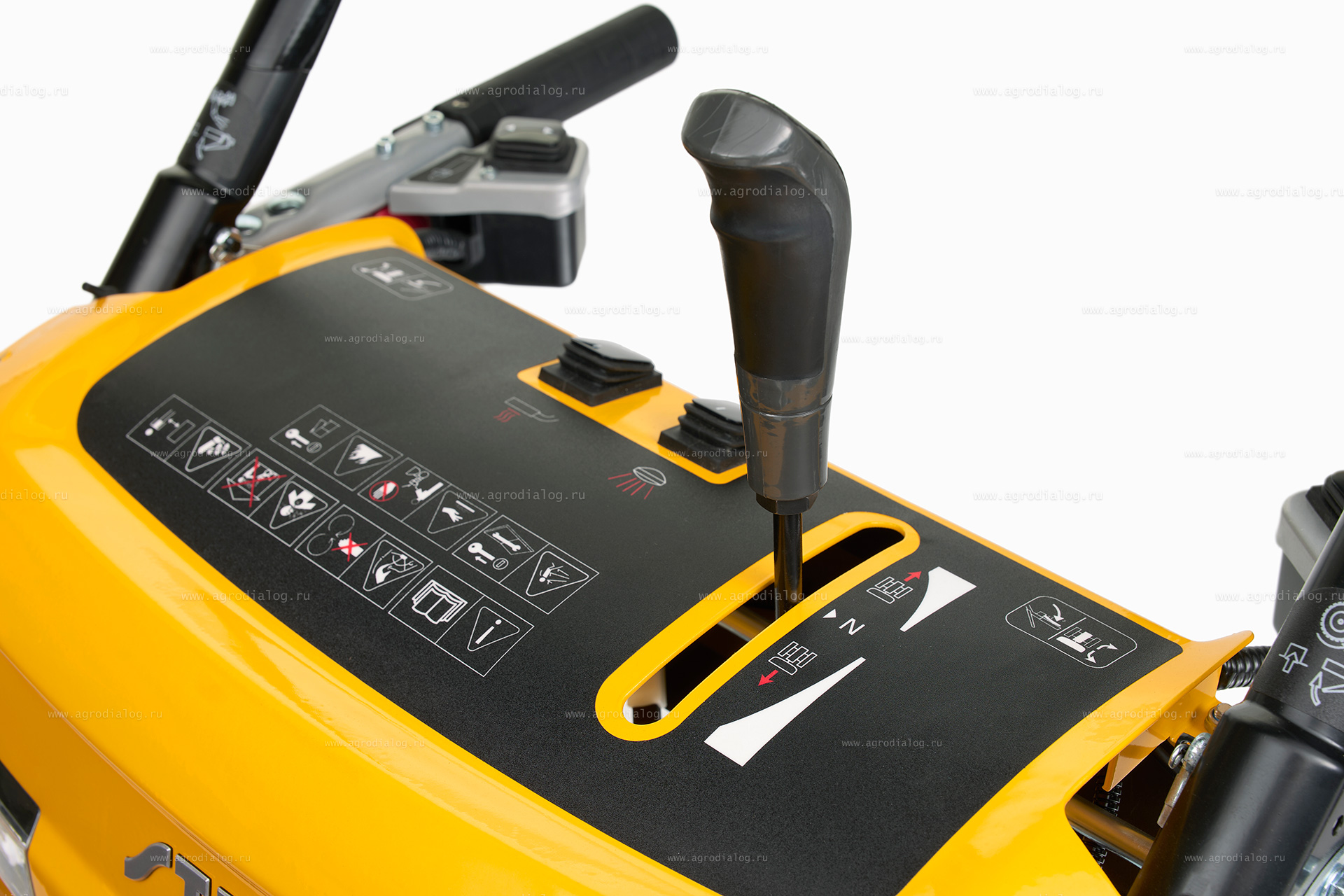 - Single hand control – блокировка ручки управления позволяет освободить одну из рук оператора, когда необходимо переключить скорость или отрегулировать направление выброса снега без остановки снегоуборщика.