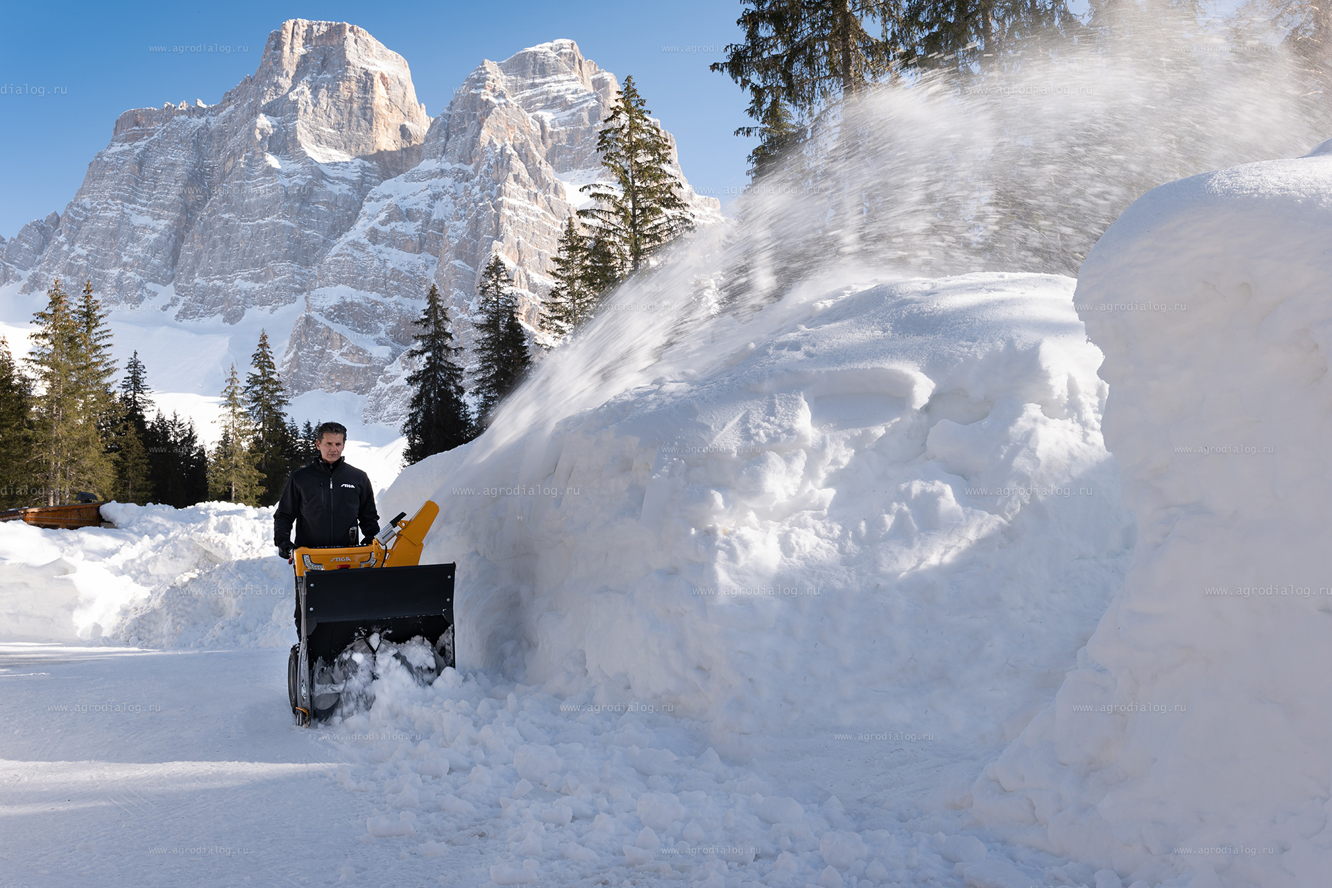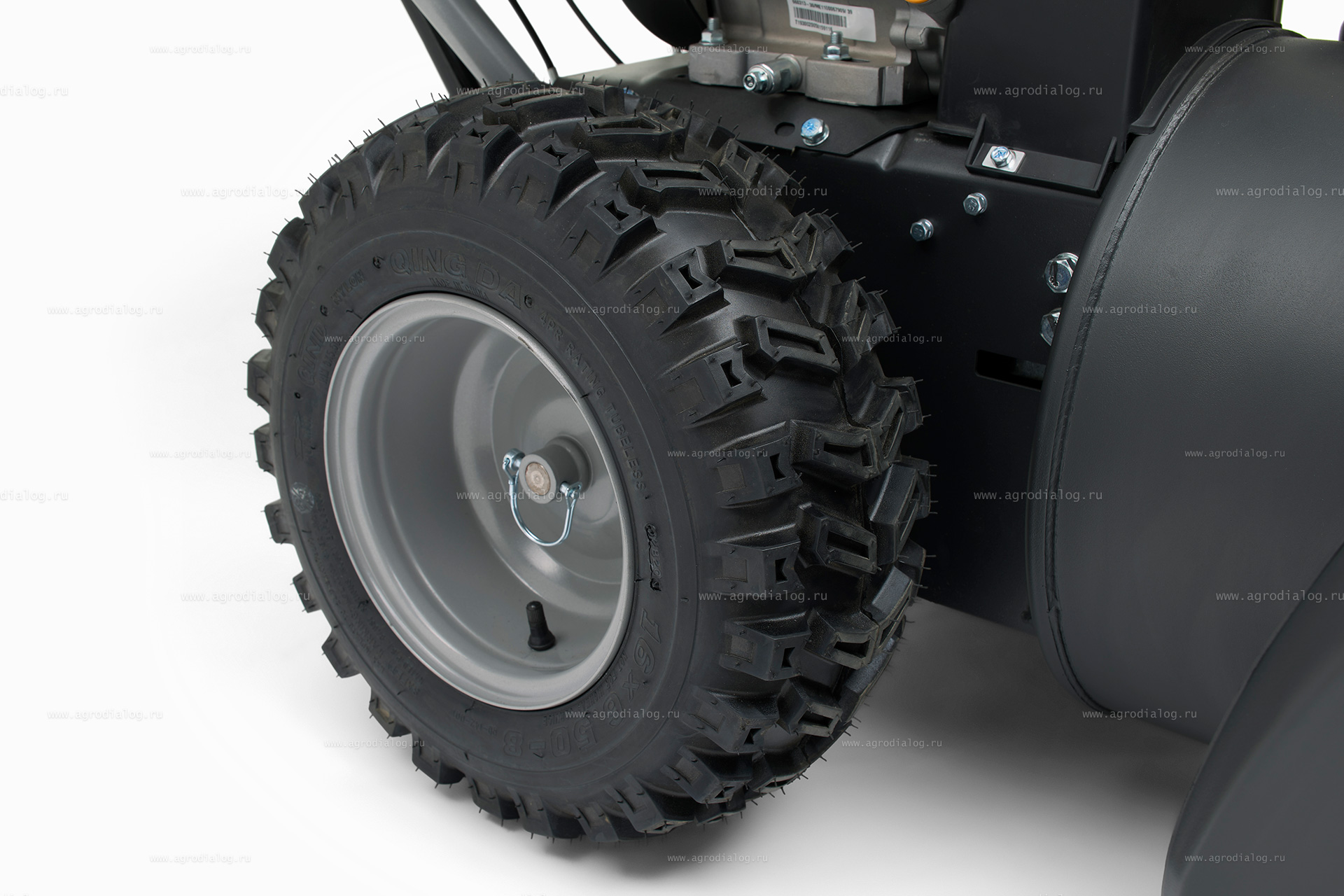 - Широкие пневматические колеса со специальным протектором резины Snow Hog, облегчают проходимость и маневрирование на заснеженной поверхности.