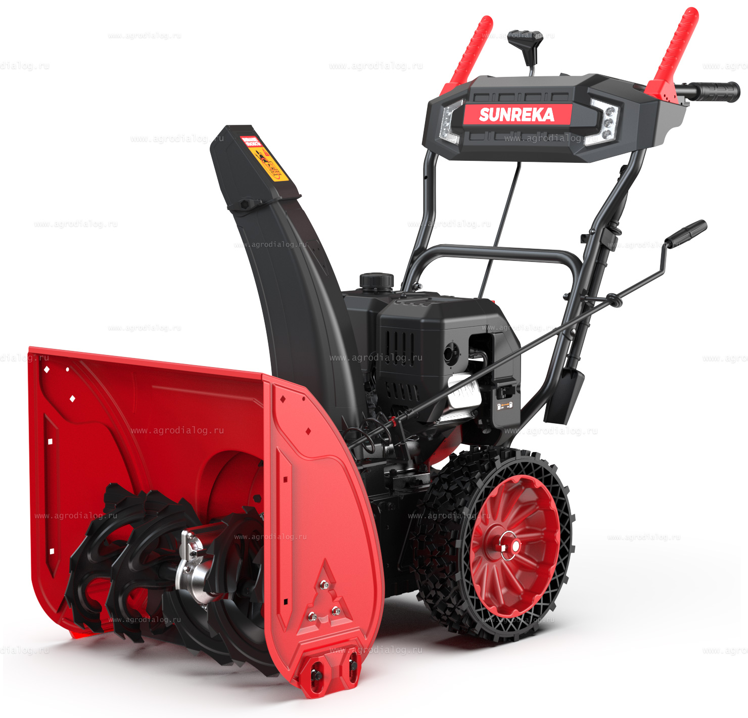 - Для удобства работы и безопасности в тёмное время суток бензиновый снегоуборщик SUNREKA GS617LE оборудован двумя LED фарами.