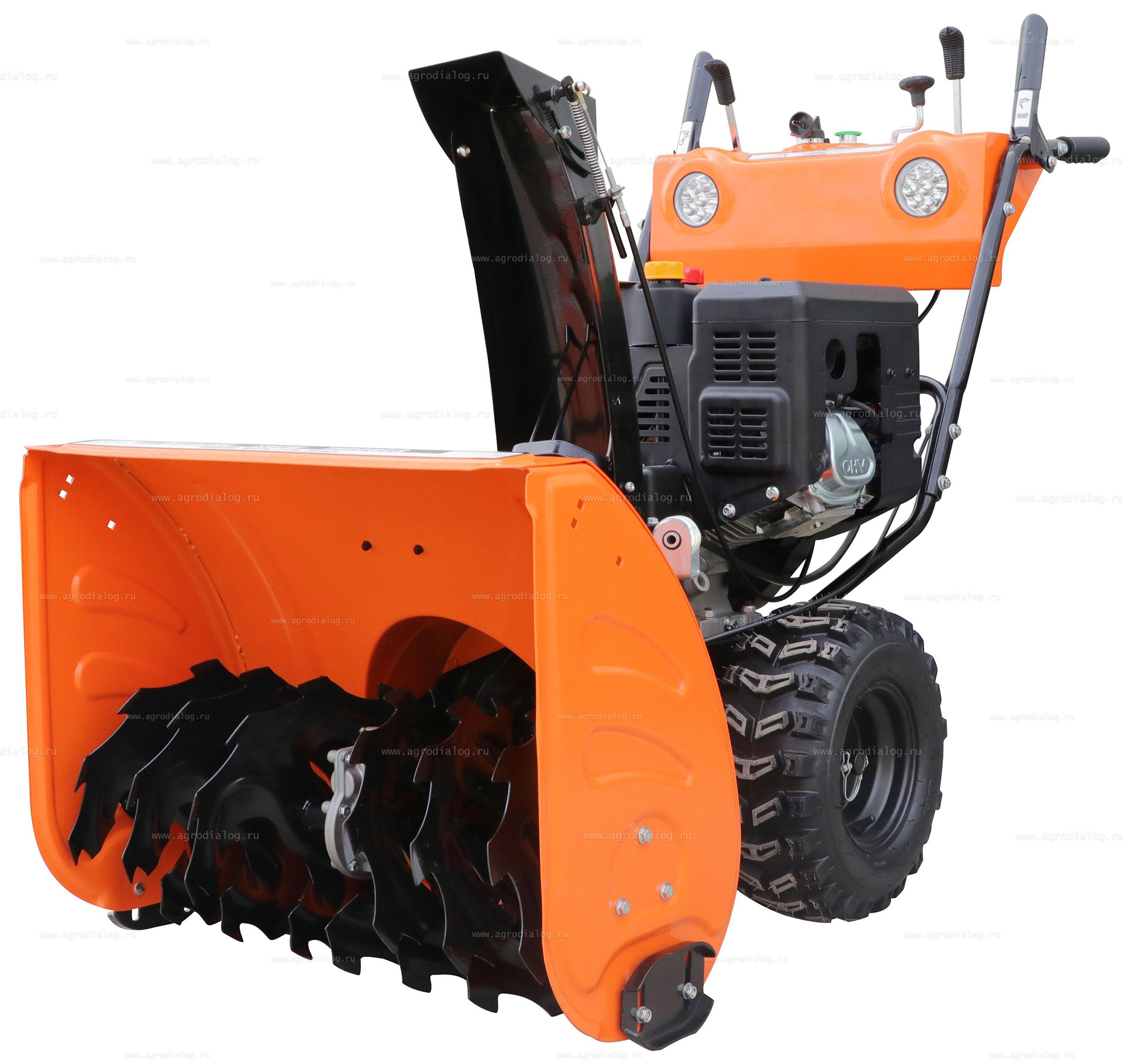 - Для удобства работы и безопасности в тёмное время суток, снегоуборщик оборудован двумя светодиодными фарами.