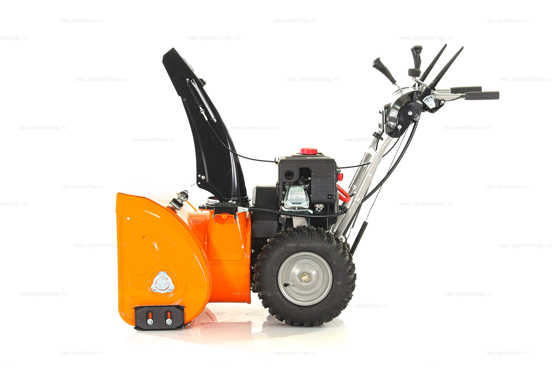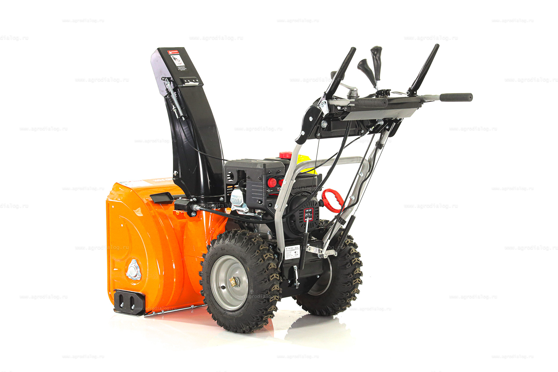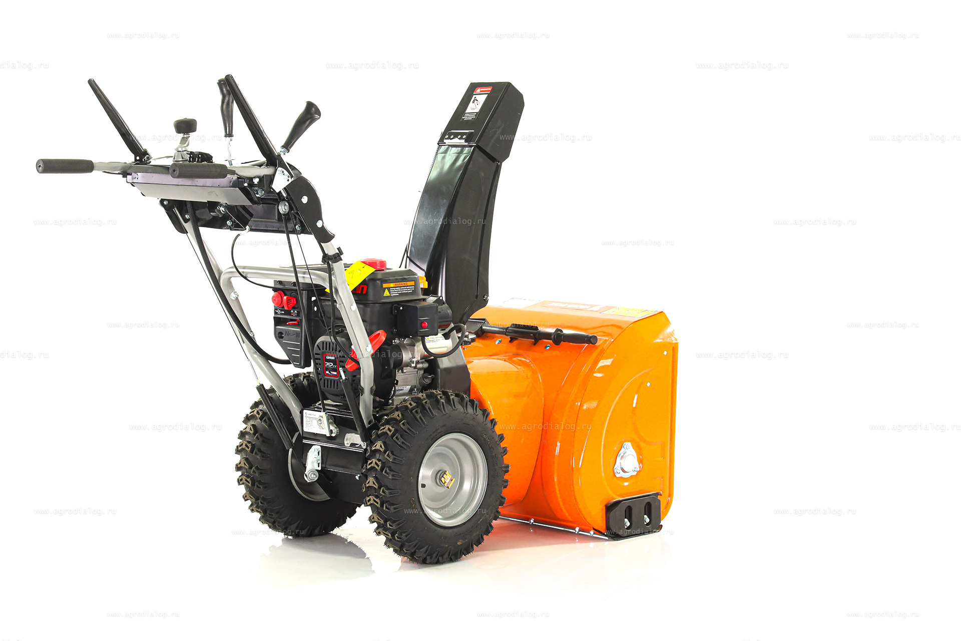 - Free hand control – блокировка ручки управления позволяет освободить одну из рук оператора, когда необходимо переключить скорость или отрегулировать направление выброса снега без остановки снегоуборщика.