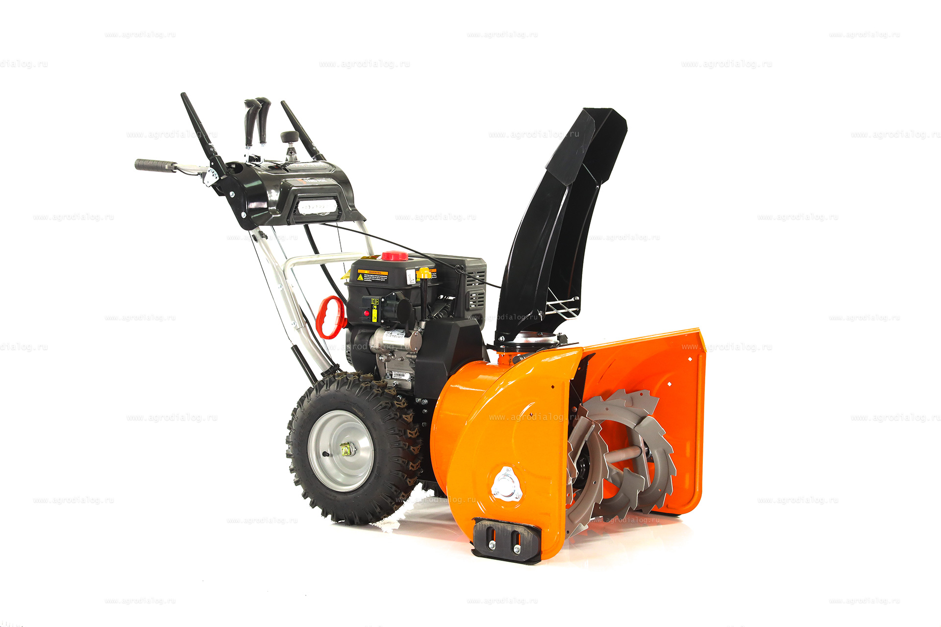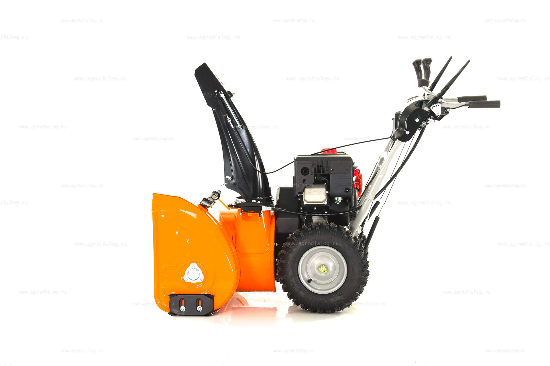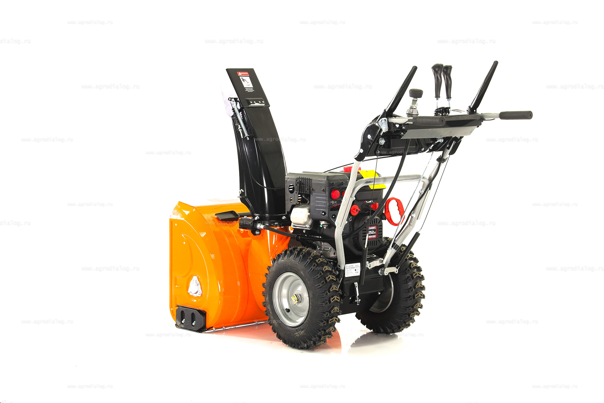 - Free hand control – блокировка ручки управления позволяет освободить одну из рук оператора, когда необходимо переключить скорость или отрегулировать направление выброса снега без остановки снегоуборщика.