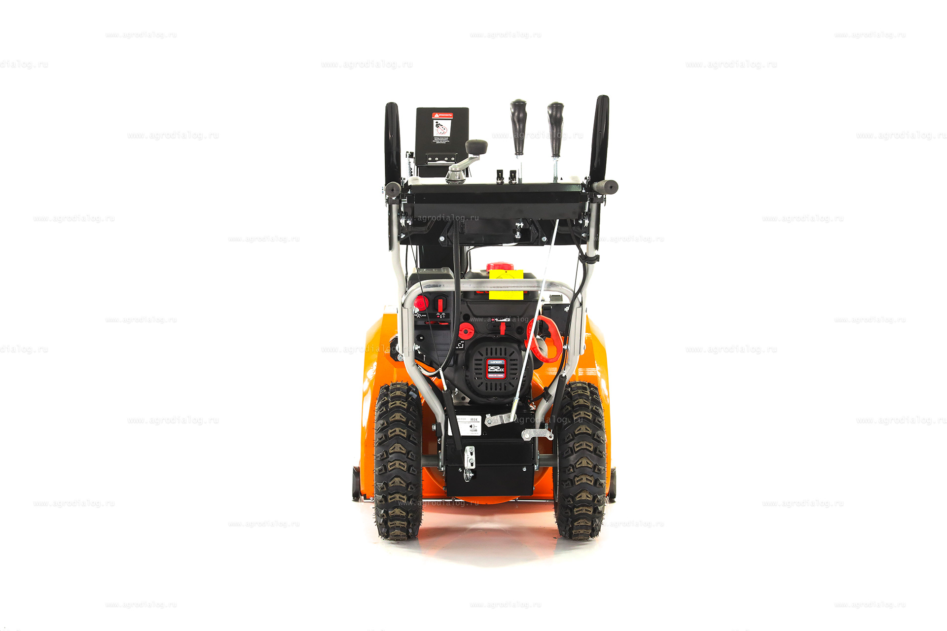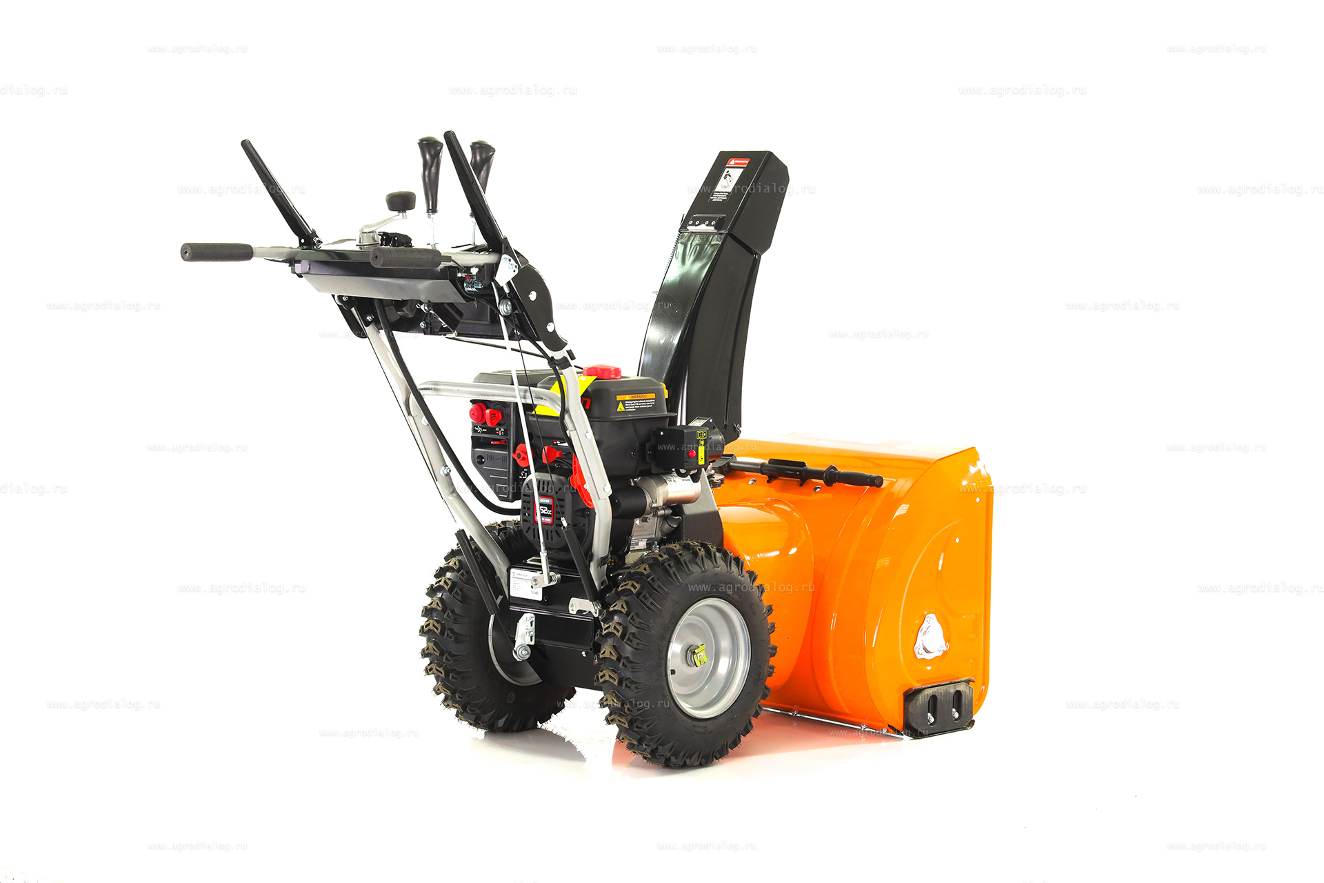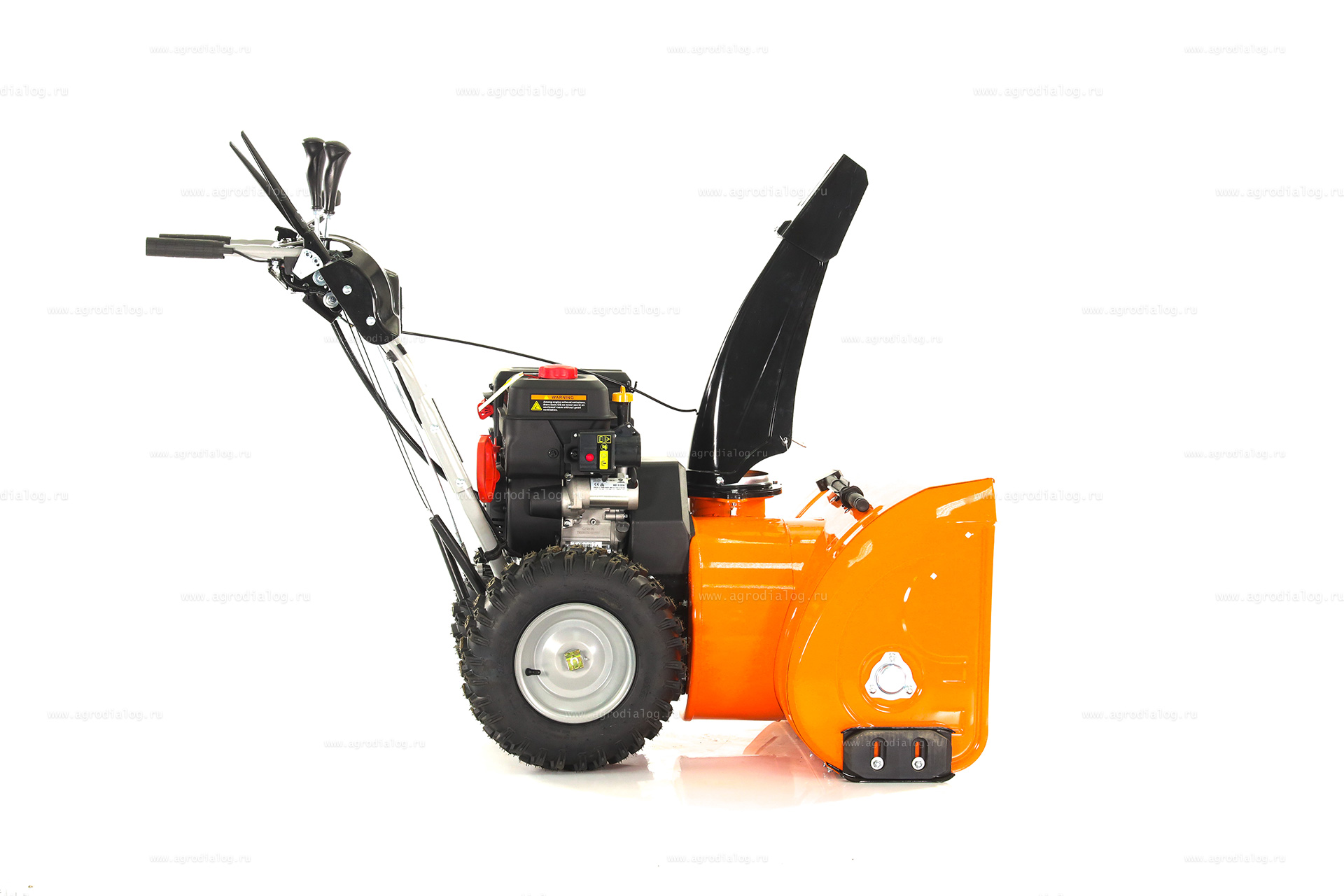 - Free hand control – блокировка ручки управления позволяет освободить одну из рук оператора, когда необходимо переключить скорость или отрегулировать направление выброса снега без остановки снегоуборщика.