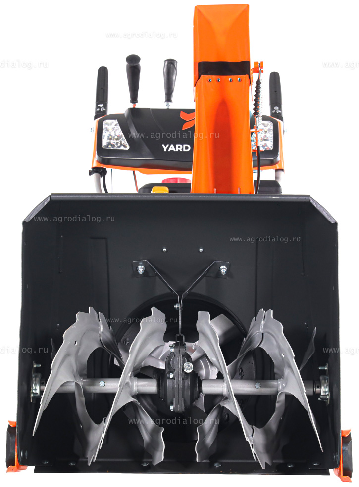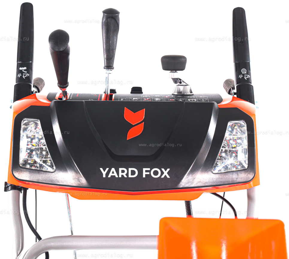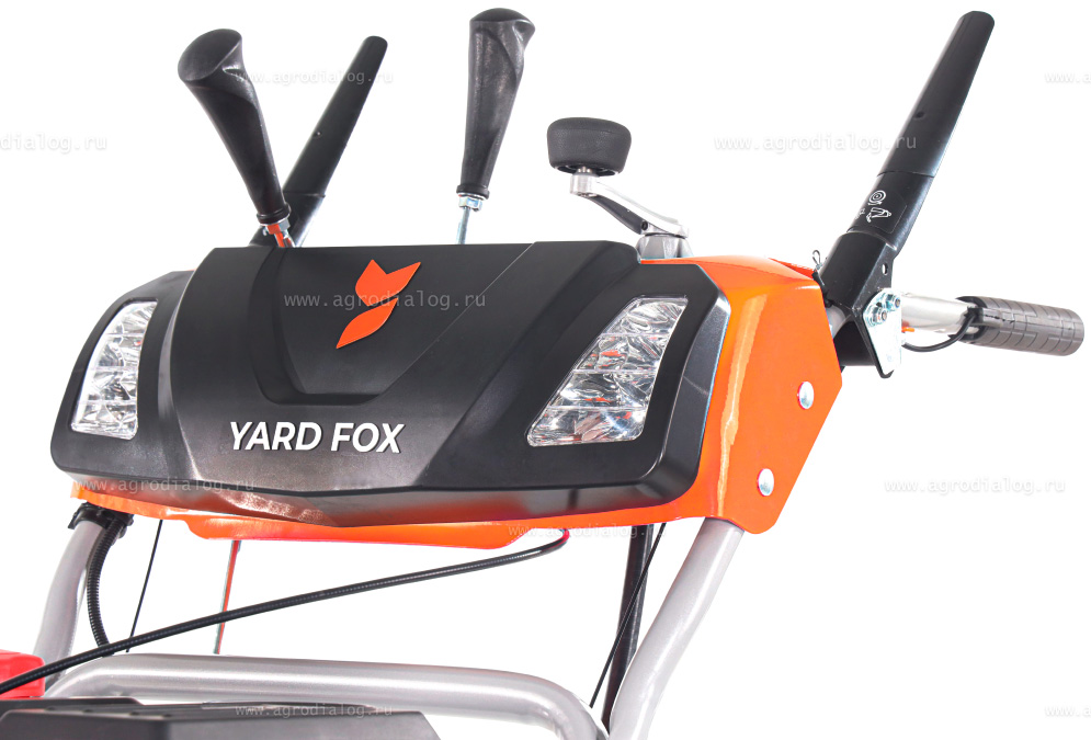 - Для удобства работы и безопасности в тёмное время суток, бензиновый снегоуборщик YARD FOX OPTIMA 6151E оборудован двойной светодиодной фарой.