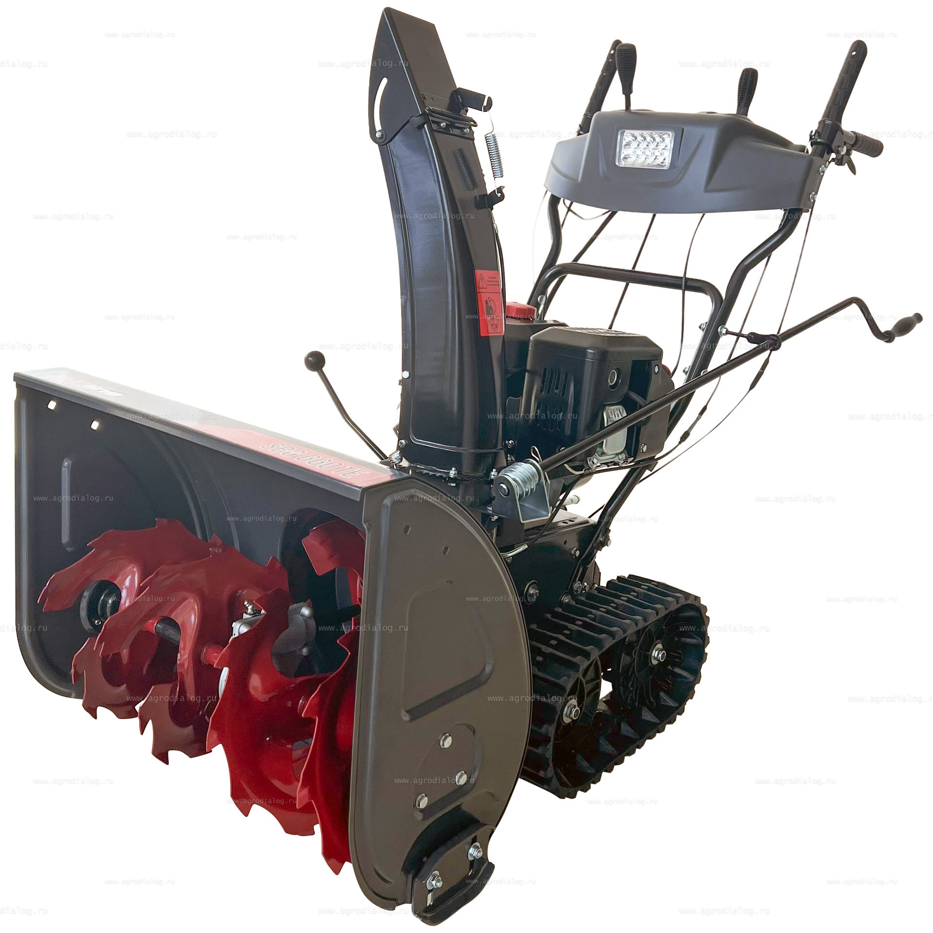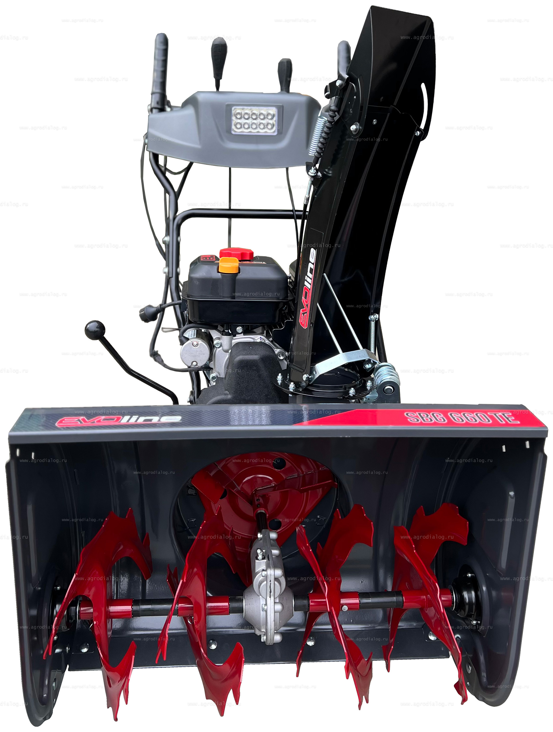 - Для удобства работы и безопасности в тёмное время суток гусеничный бензиновый снегоуборщик EVOline SBG 660 TE оборудован LED фарой.