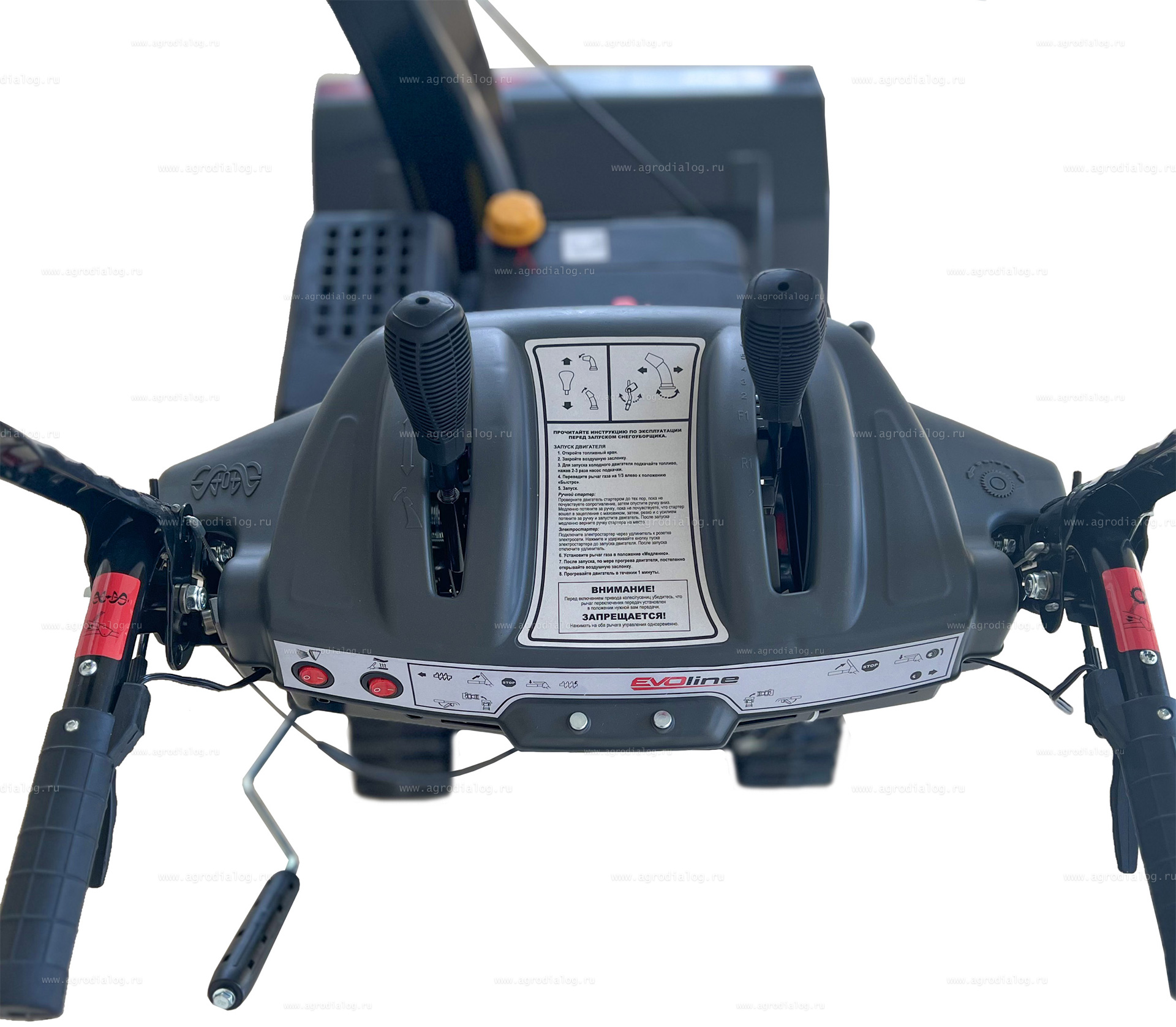 - Гусеничный бензиновый снегоуборщик EVOline SBG 700 TLE удобен в использовании и обеспечивает качественную уборку территорий с разными дорожными покрытиями.