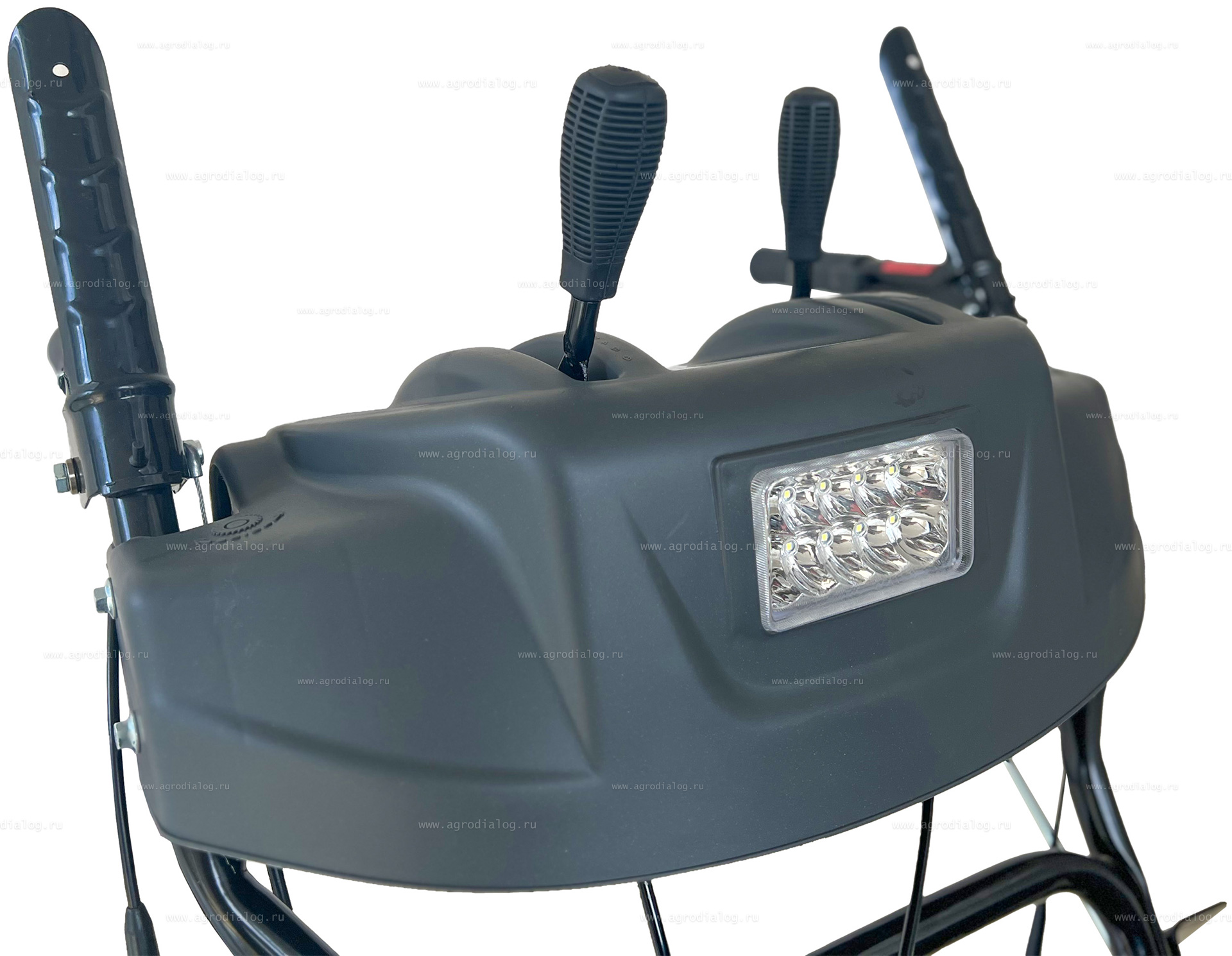 - Для удобства работы и безопасности в тёмное время суток гусеничный бензиновый снегоуборщик EVOline SBG 700 TLE оборудован LED фарой.