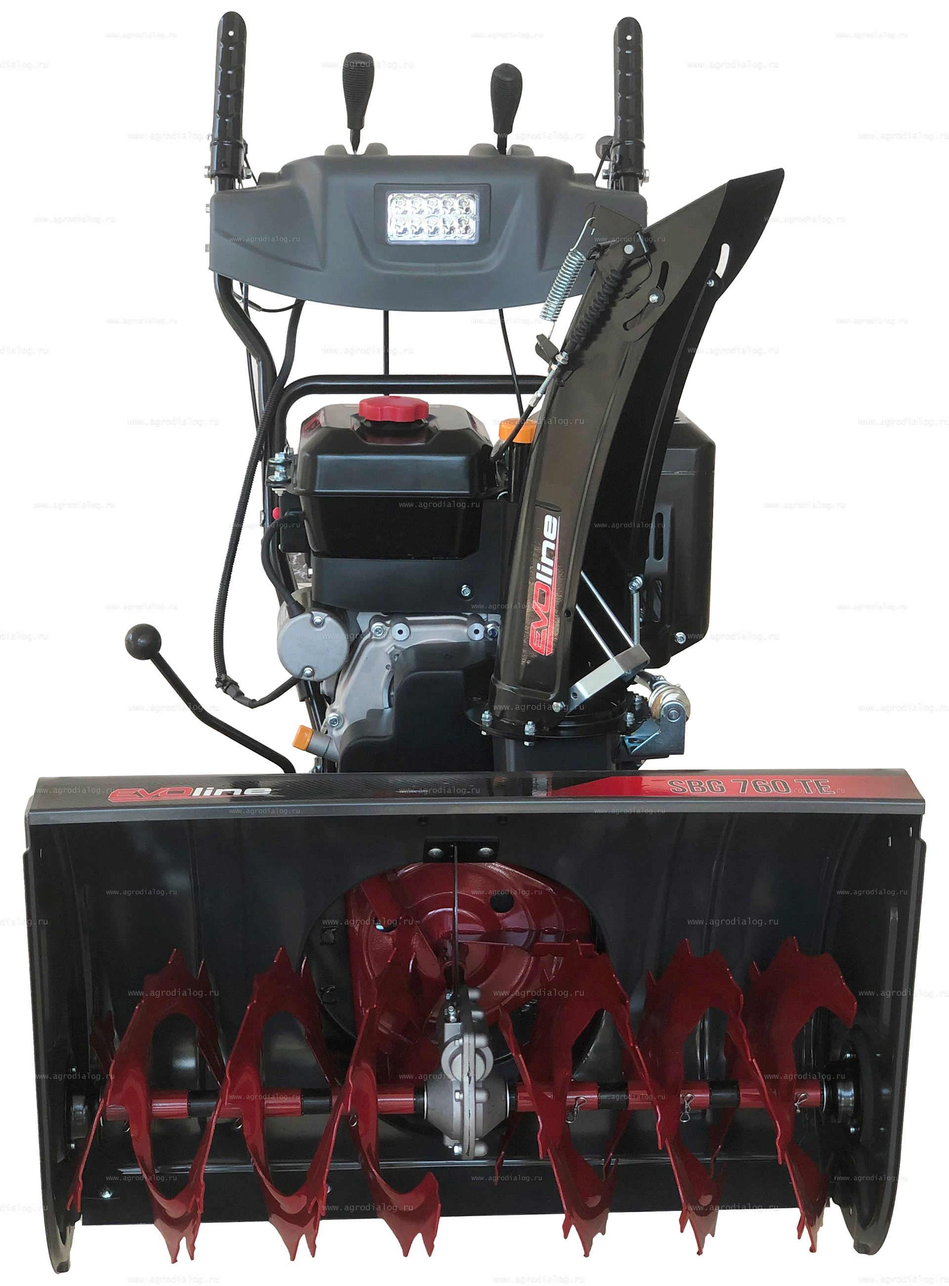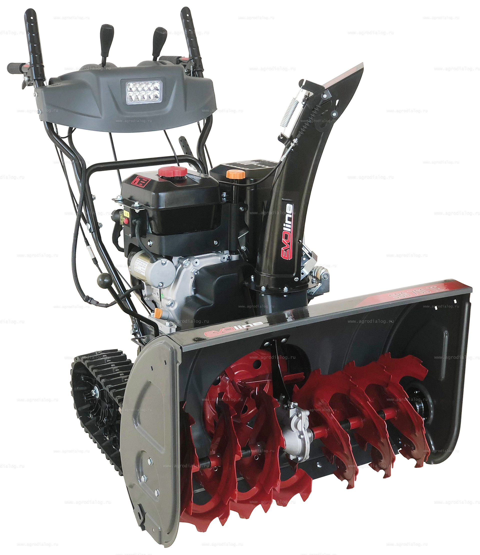 - Для удобства работы и безопасности в тёмное время суток гусеничный бензиновый снегоуборщик EVOline SBG 760 TE оборудован LED фарой.