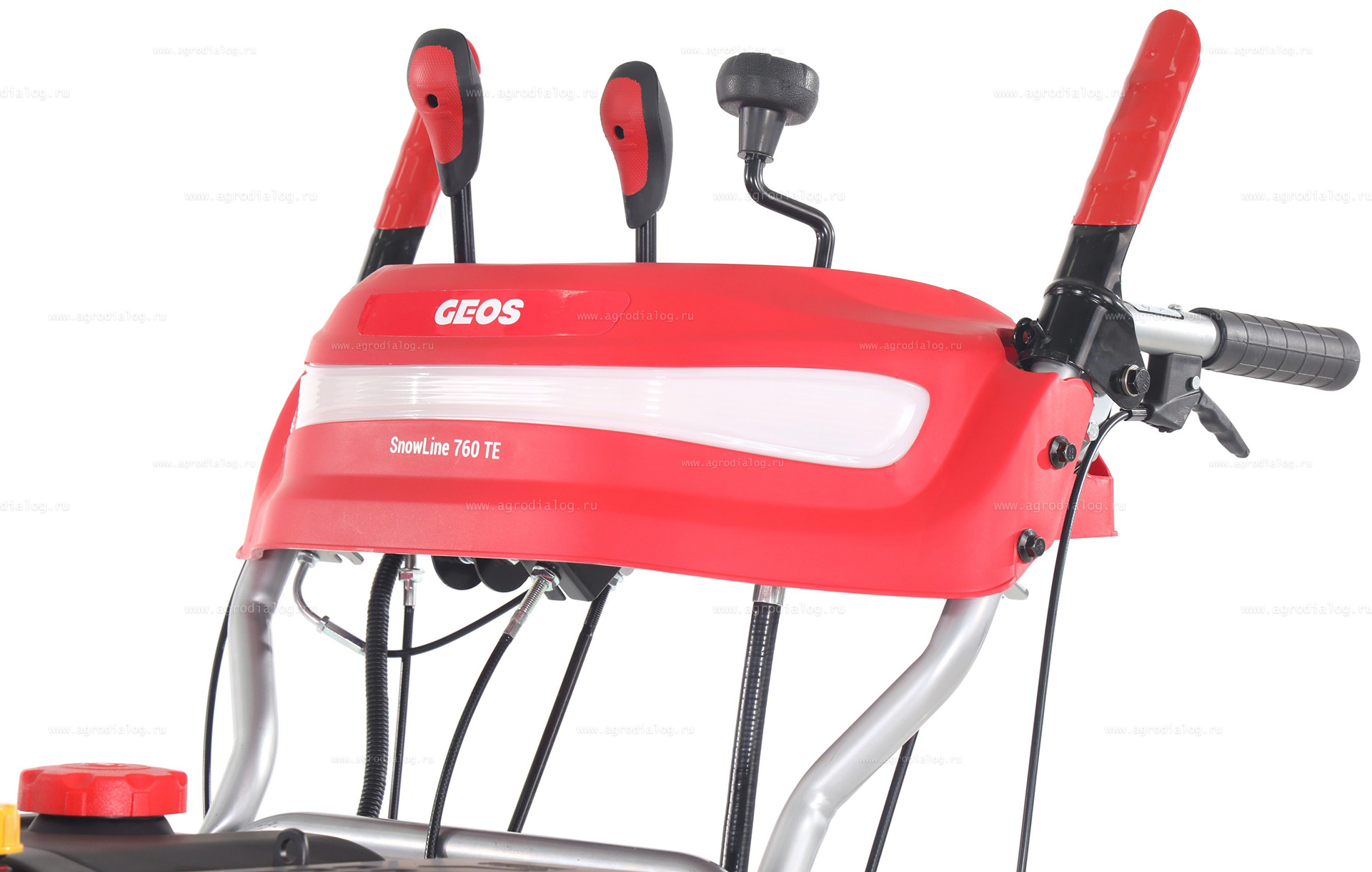 - Гусеничный бензиновый снегоуборщик GEOS Premium SnowLine 760 TE удобен в использовании и обеспечивает качественную уборку территорий с разными дорожными покрытиями.