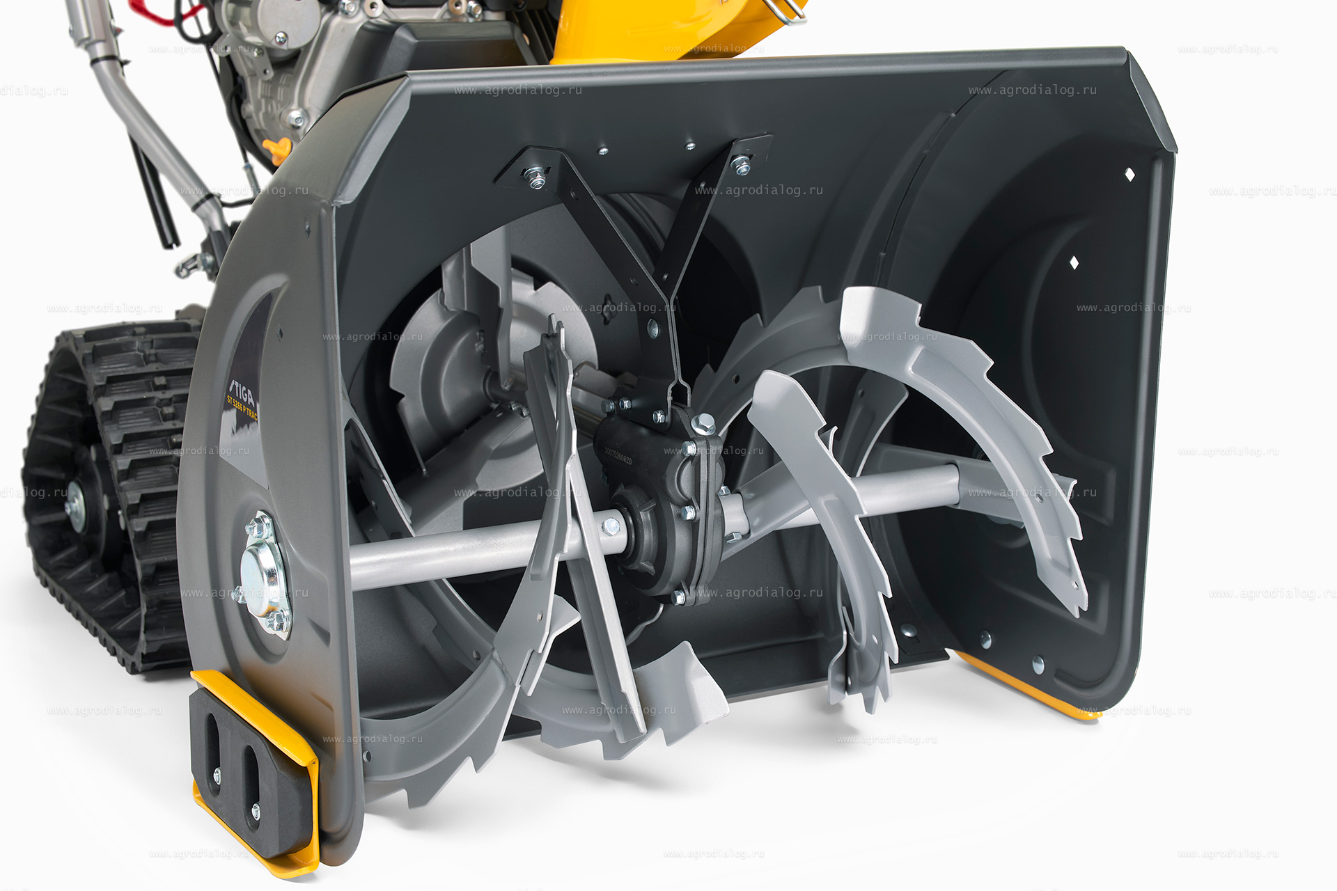 - Усиленные зубчатые шнеки обеспечивают качественное измельчение наледи и слежавшегося снега.