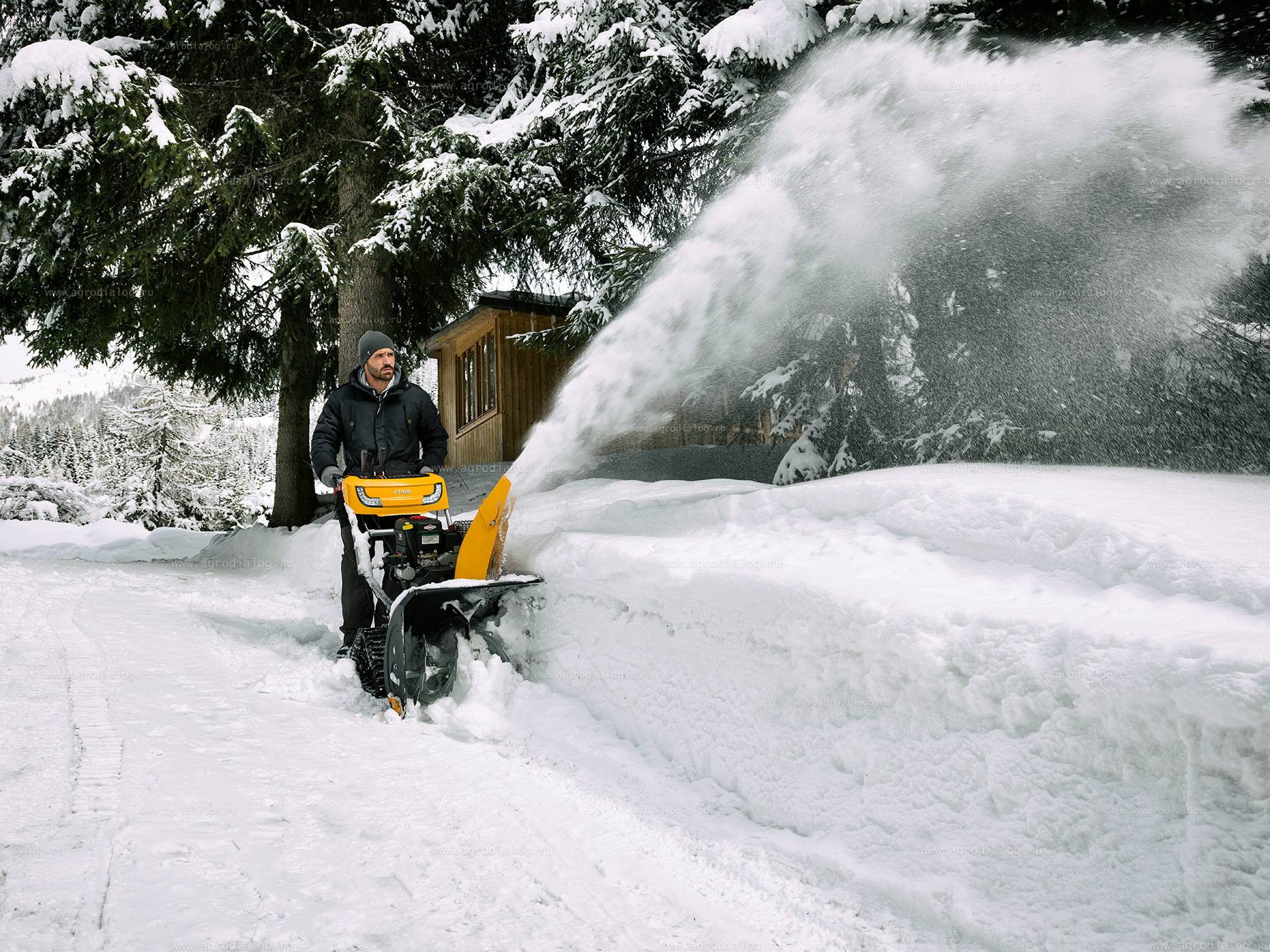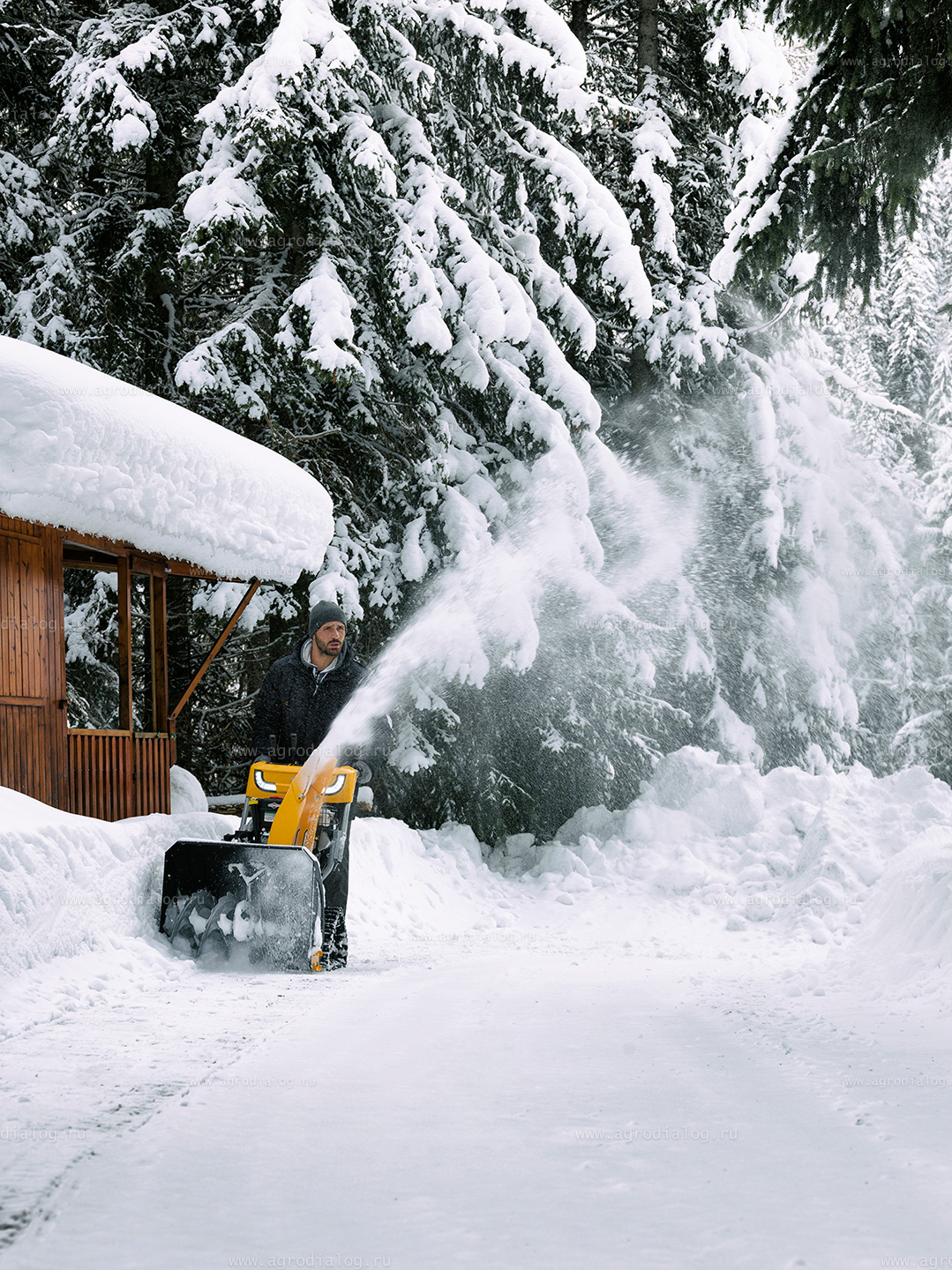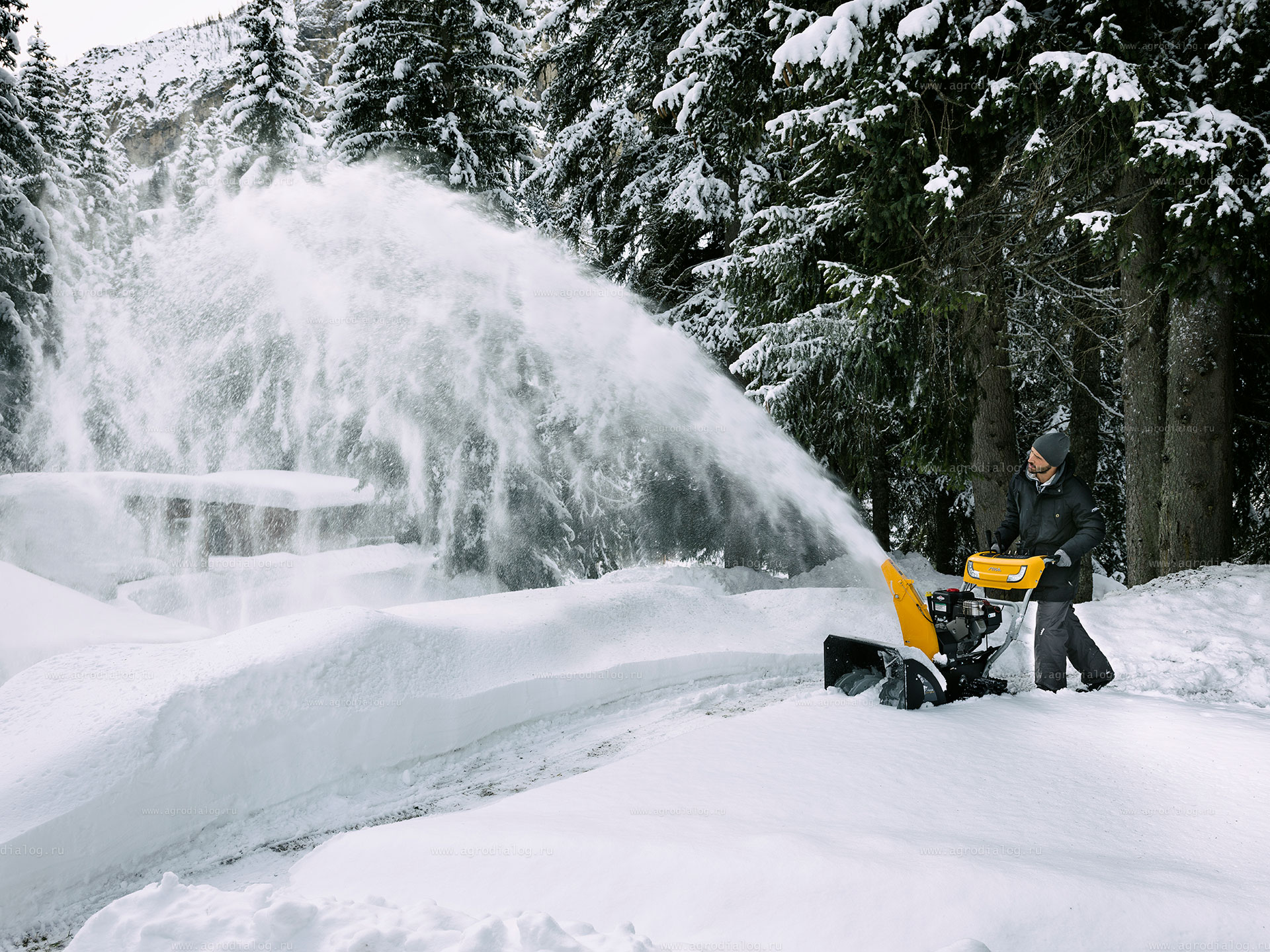 - Single hand control – блокировка ручки управления позволяет освободить одну из рук оператора, когда необходимо переключить скорость или отрегулировать направление выброса снега без остановки снегоуборщика.