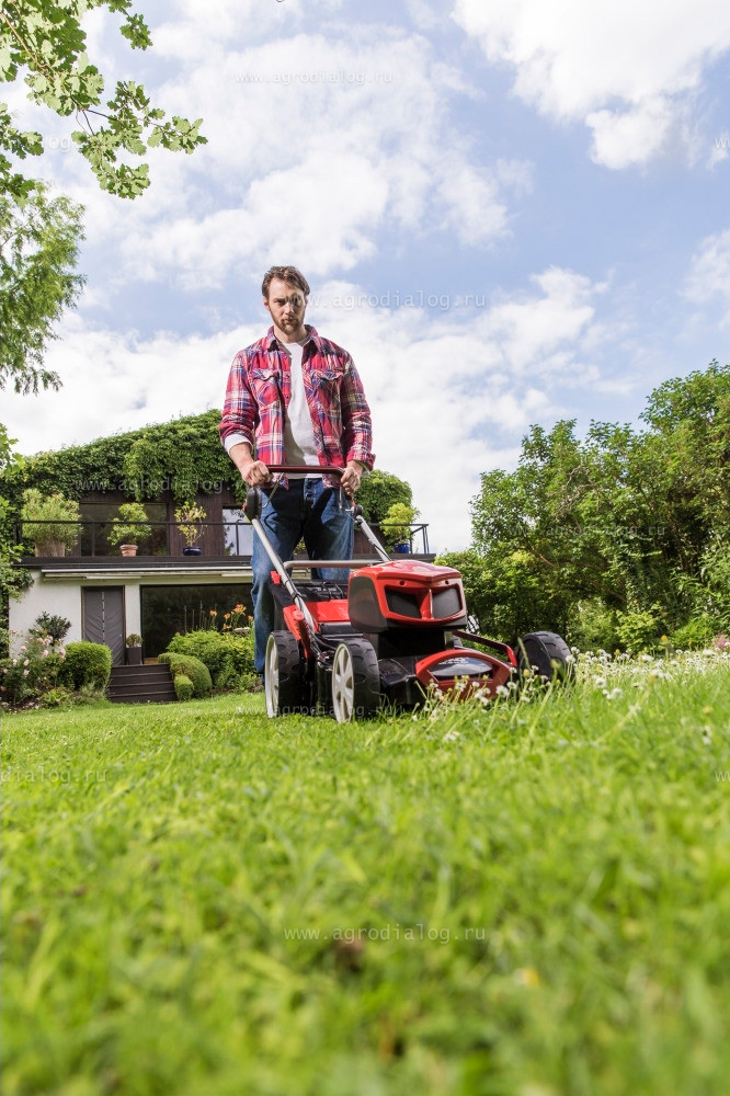 Аккумуляторные самоходные газонокосилки предназначены для кошения газонов средней и большой площади. Привод на колеса обеспечивает самостоятельное перемещение косилки по участку, оператору требуется только менять направление движения. Техника способна работать на территориях, имеющих сложный рельеф участка.