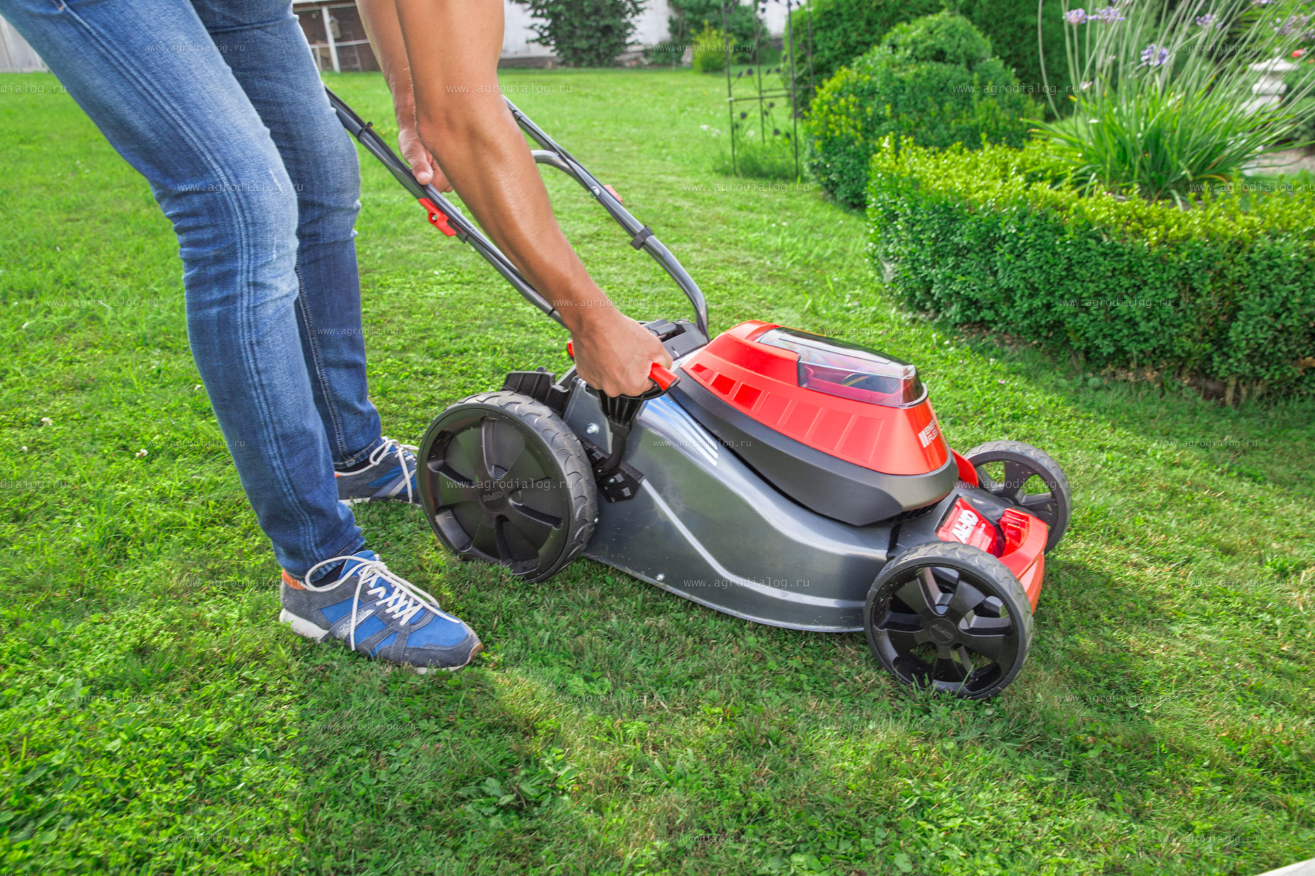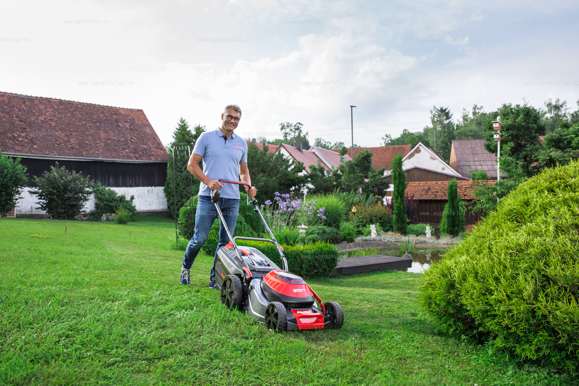 Аккумуляторные самоходные газонокосилки предназначены для кошения газонов средней и большой площади. Привод на колеса обеспечивает самостоятельное перемещение косилки по участку, оператору требуется только менять направление движения. Техника способна работать на территориях, имеющих сложный рельеф участка.