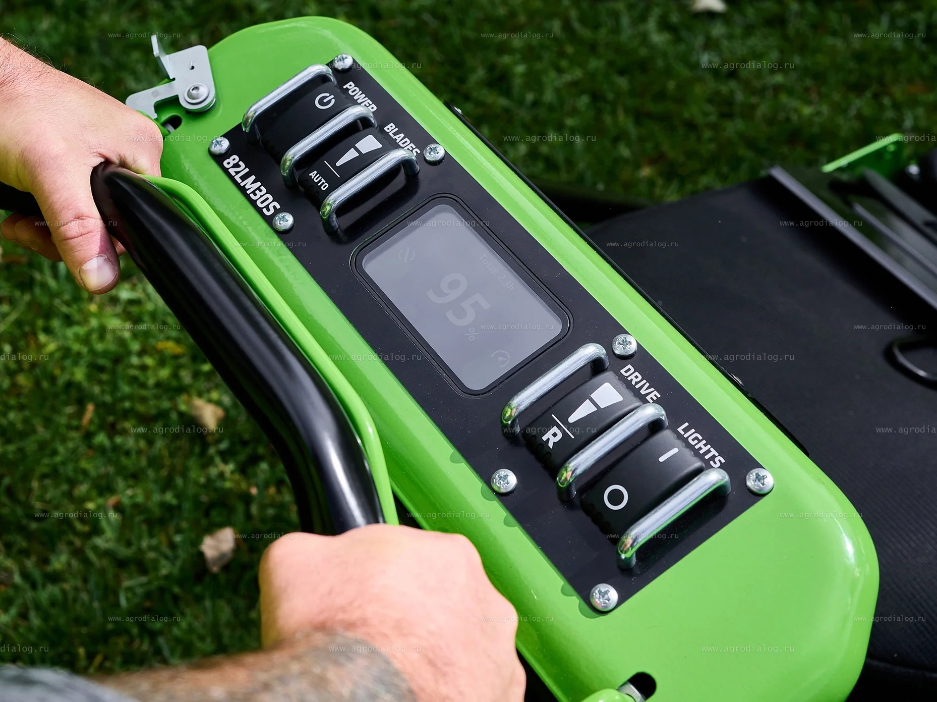 - Современный ЖК-экран предоставляет оператору важную информацию: состояние аккумулятора, скорость передвижения, частота вращения ножей и коды ошибок.