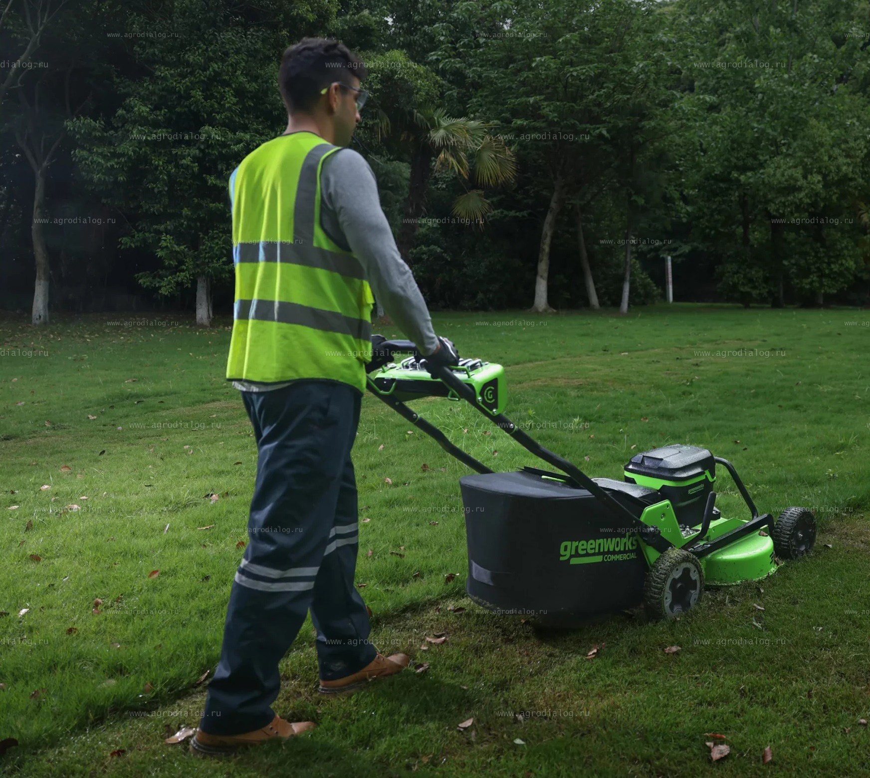- Под управлением интеллектуальной системы Greenworks Intelligent Power, все компоненты устройства: аккумуляторные батареи, двигатели привода колес, двигатели привода ножевых аппаратов и электронные контроллеры работают как единое целое.