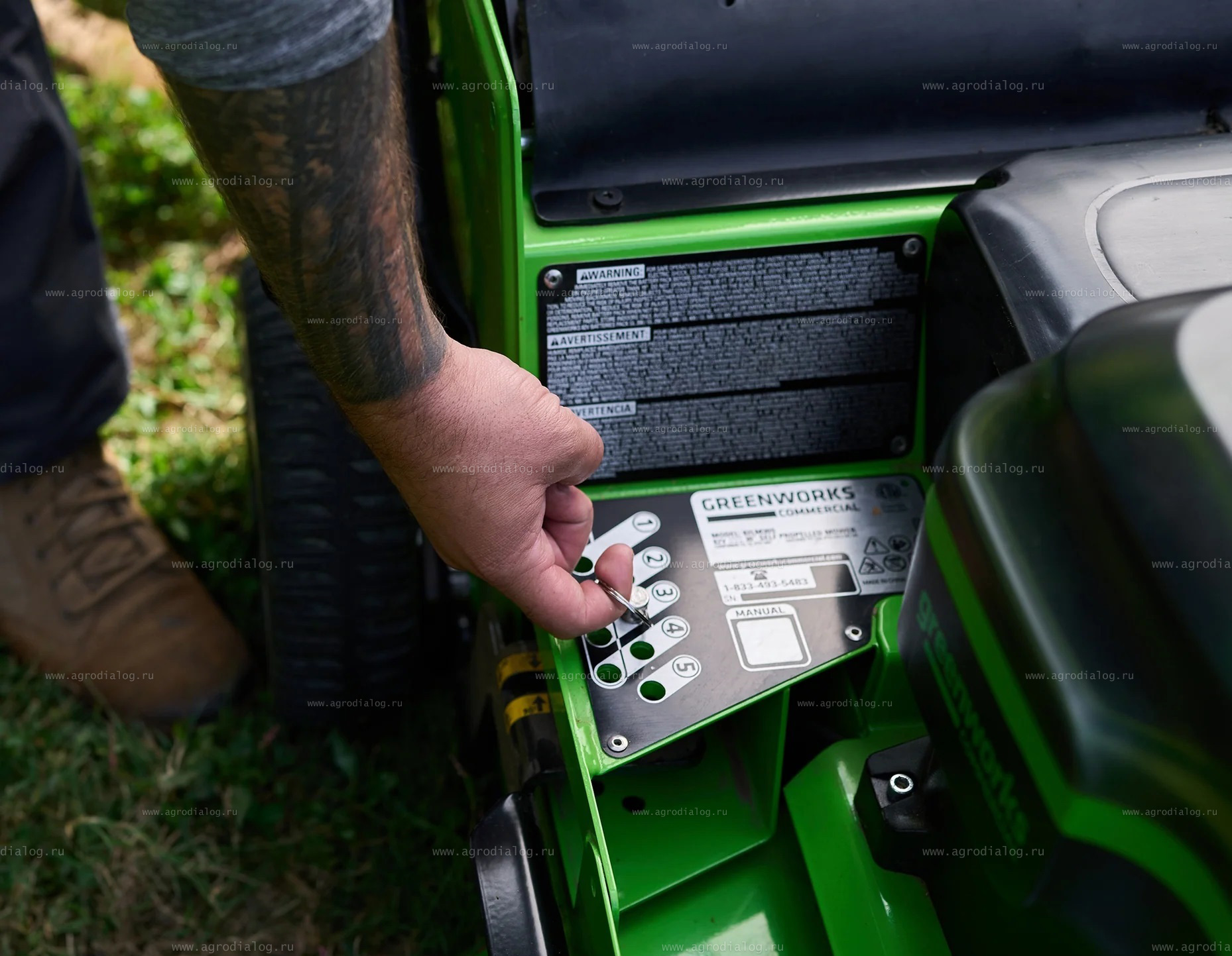 - Под управлением интеллектуальной системы Greenworks Intelligent Power, все компоненты устройства: аккумуляторные батареи, двигатели привода колес, двигатели привода ножевых аппаратов и электронные контроллеры работают как единое целое.