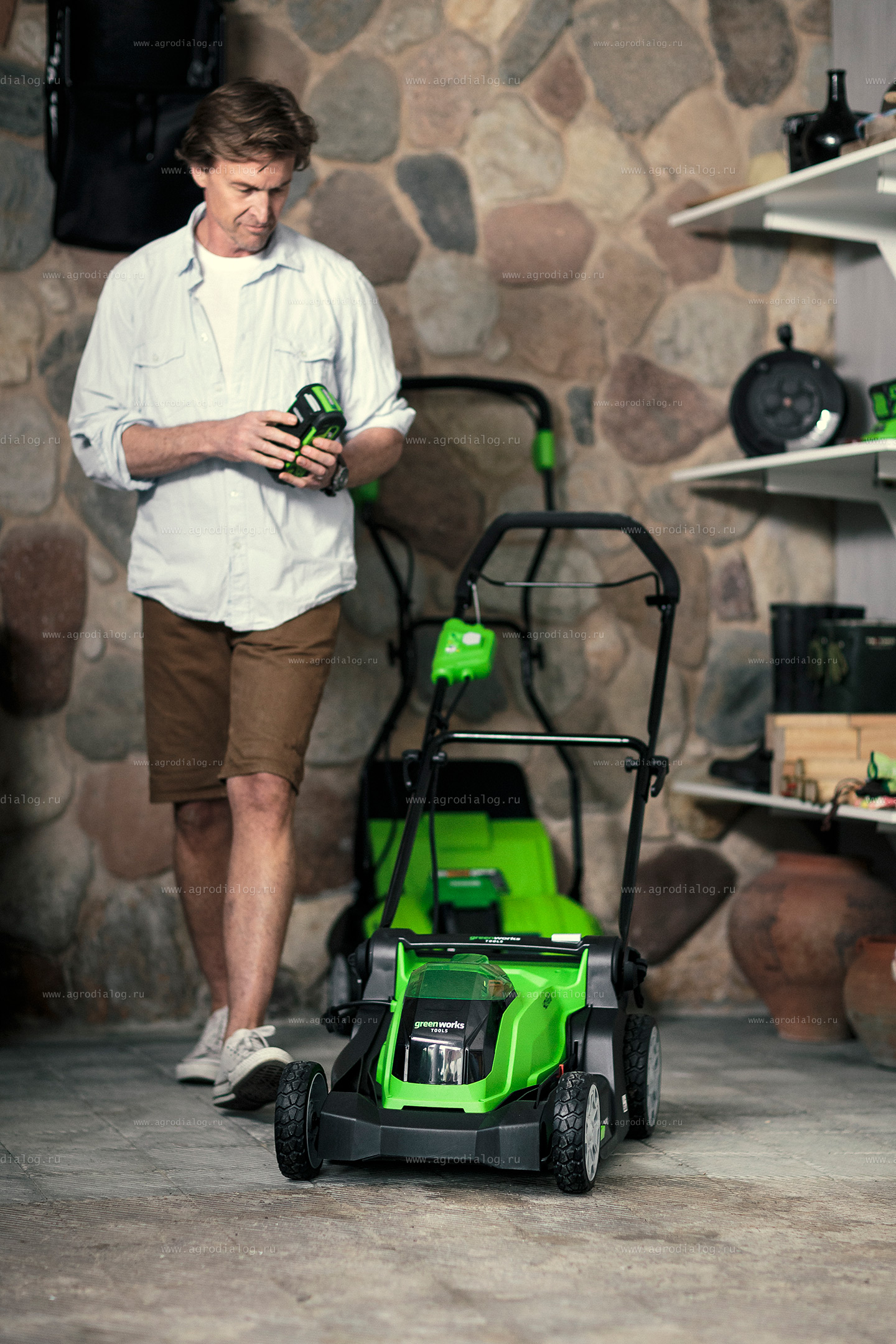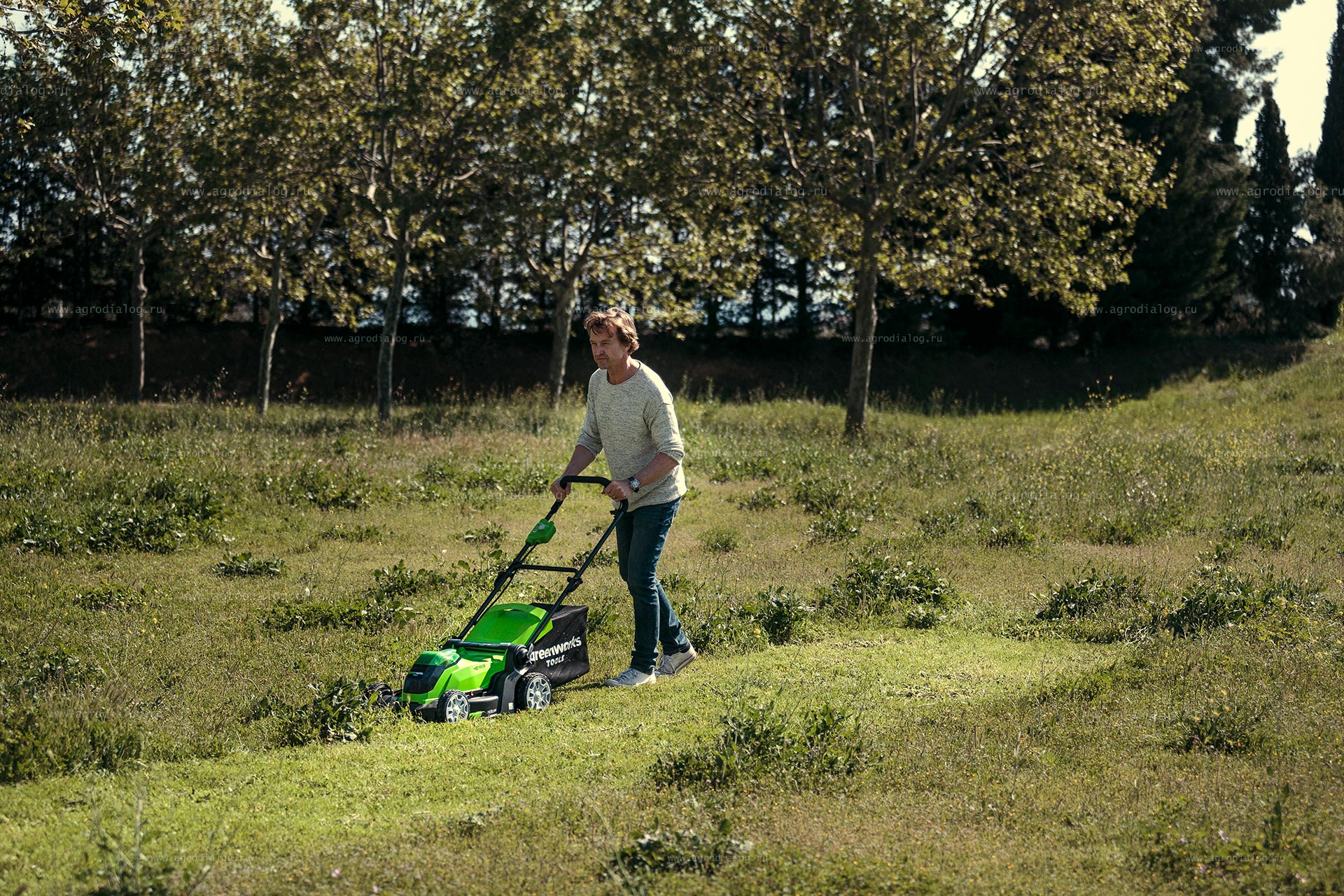 - Несамоходная аккумуляторная газонокосилка Greenworks G40LM41 работает от аккумуляторной батареи, которая подходит ко всем инструментам системы 40V. Один аккумулятор и одно зарядное устройство для разных групп инструментов – это рационально и эффективно.