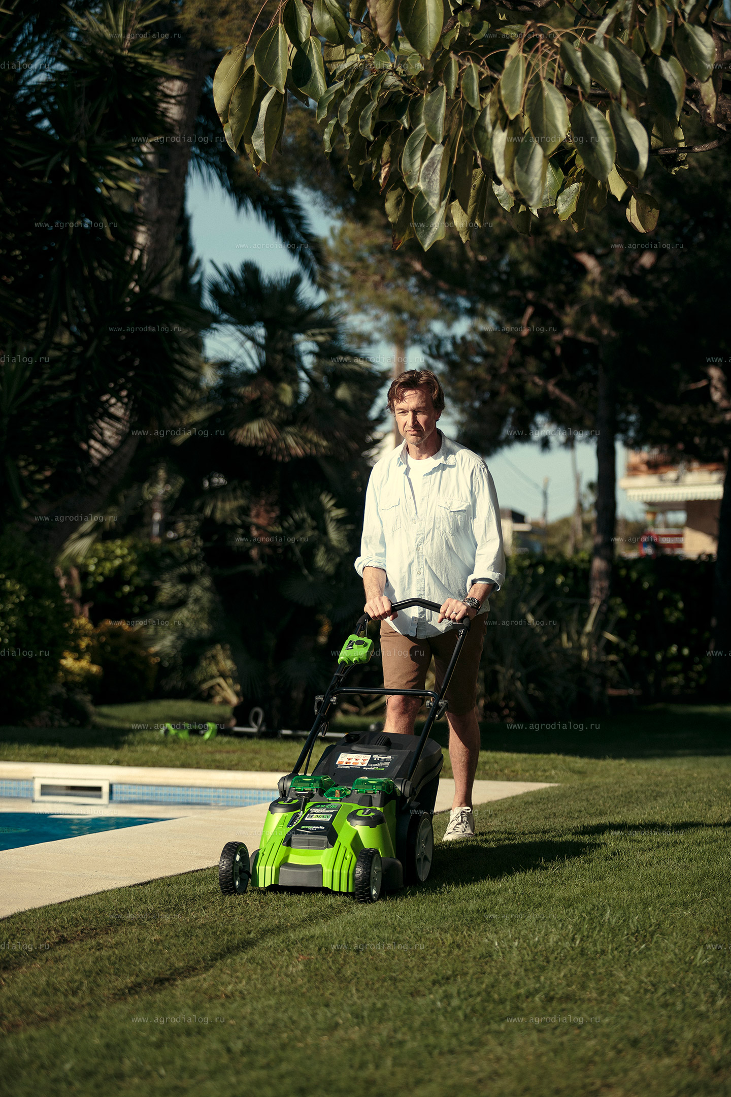 - Несамоходная аккумуляторная газонокосилка Greenworks G40LM49DB работает от аккумуляторной батареи, которая подходит ко всем инструментам системы 40V. Один аккумулятор и одно зарядное устройство для разных групп инструментов – это рационально и эффективно.