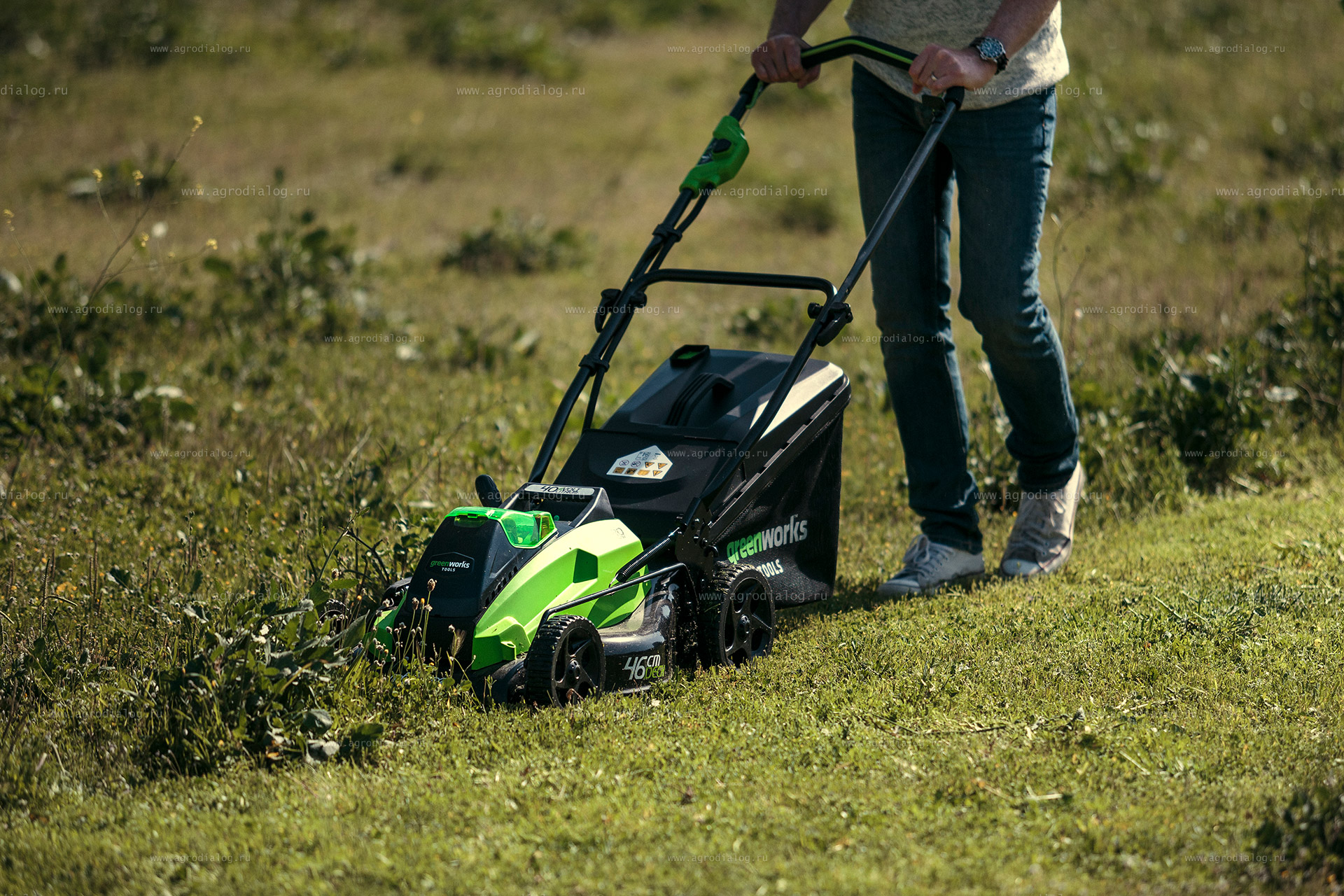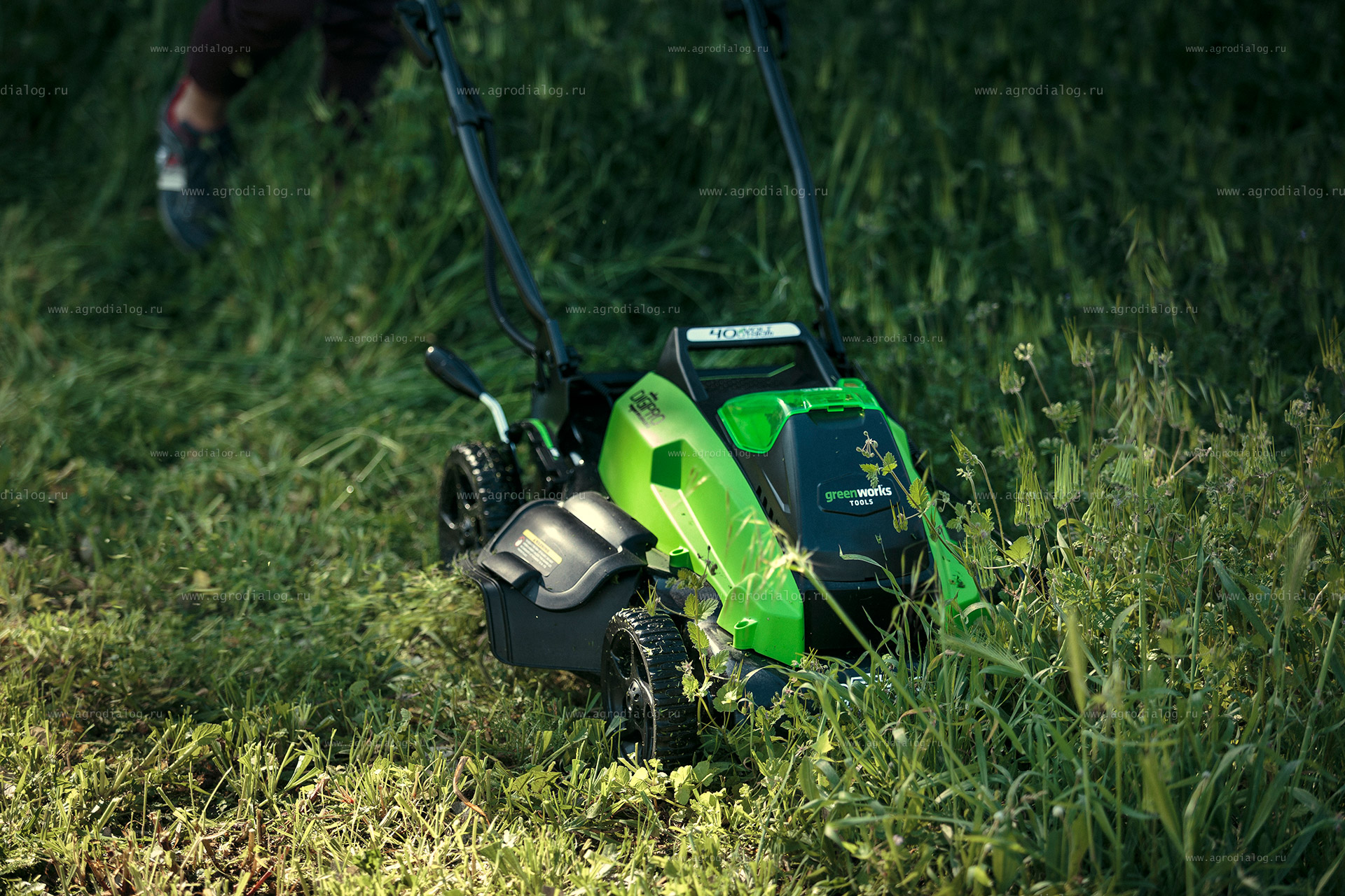 - Несамоходная аккумуляторная газонокосилка Greenworks GD40LM45 работает от аккумуляторной батареи, которая подходит ко всем инструментам системы 40V. Один аккумулятор и одно зарядное устройство для разных групп инструментов – это рационально и эффективно.