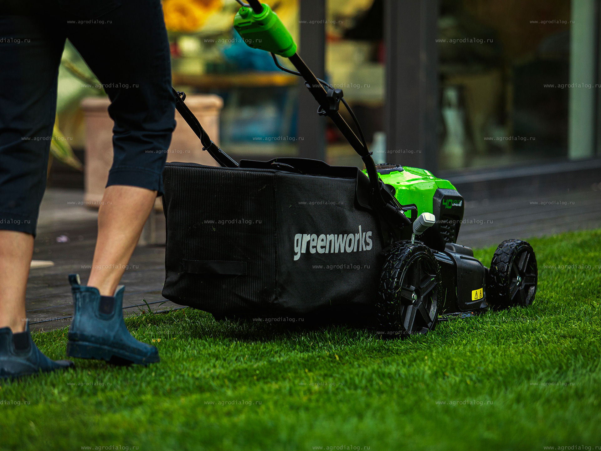 - Самоходная аккумуляторная газонокосилка Greenworks GD40LM46SP работает от аккумуляторной батареи, которая подходит ко всем инструментам системы 40V. Один аккумулятор и одно зарядное устройство для разных групп инструментов – это рационально и эффективно.