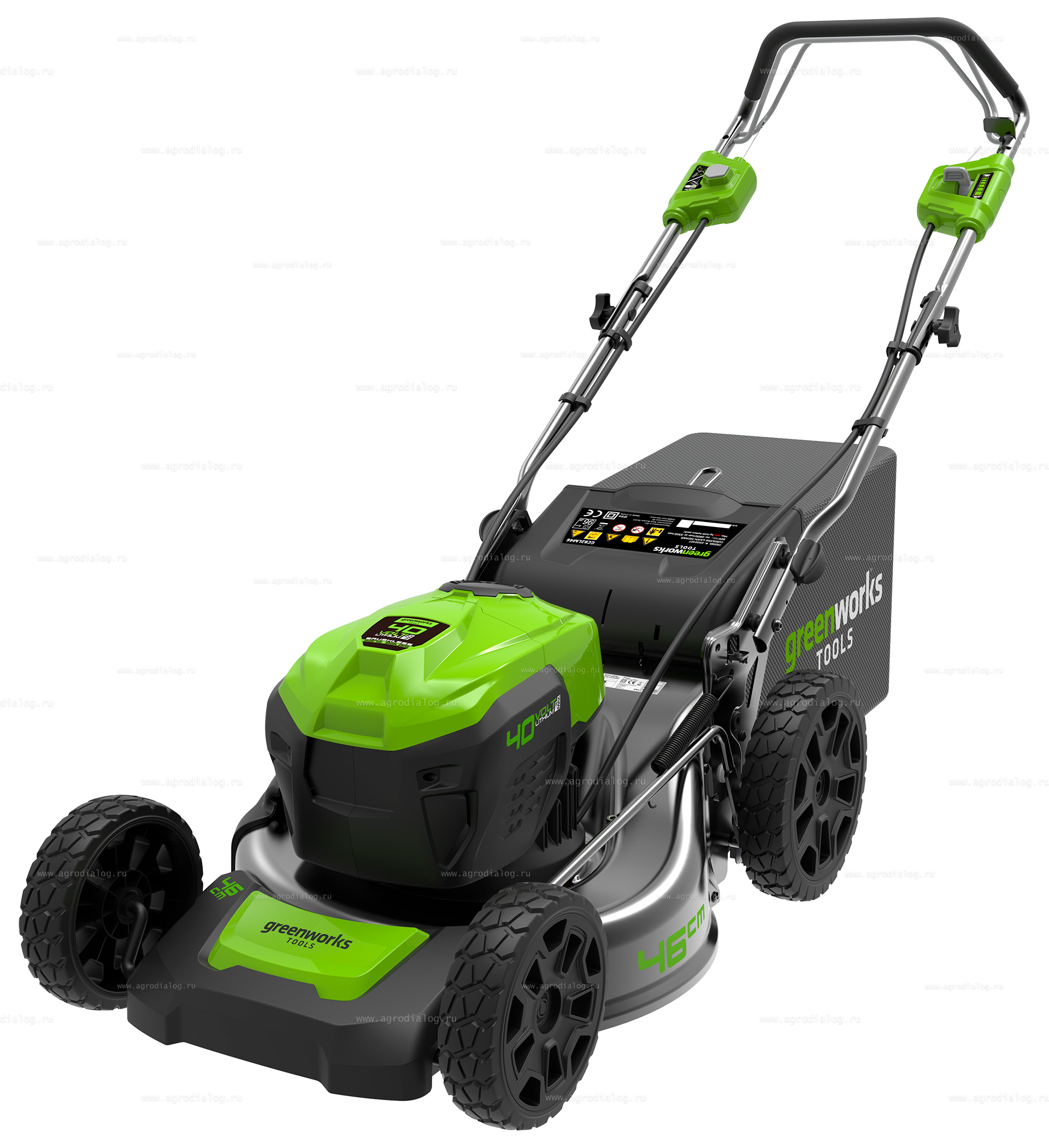 - Самоходная аккумуляторная газонокосилка Greenworks GD40LM46SPK4 оснащена не требующим обслуживания, высокоэффективным бесщёточным двигателем, что гарантирует длительную работу и долгий срок службы инструмента.