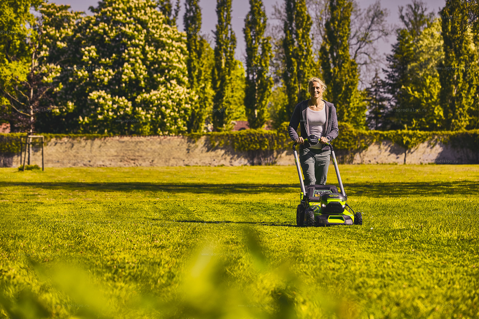 Аккумуляторные самоходные газонокосилки предназначены для кошения газонов средней и большой площади. Привод на колеса обеспечивает самостоятельное перемещение косилки по участку, оператору требуется только менять направление движения. Техника способна работать на территориях, имеющих сложный рельеф участка.