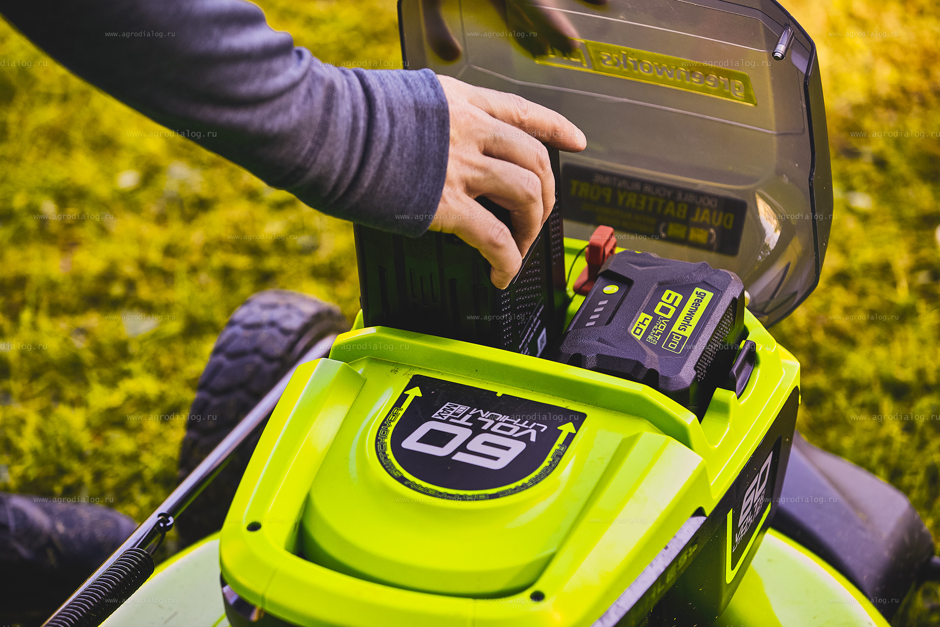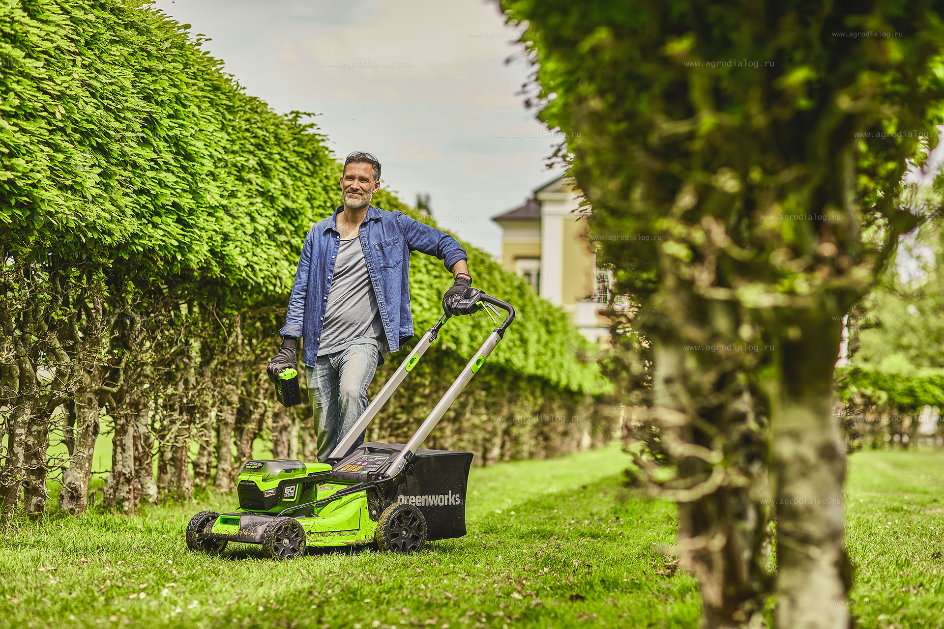 - Самоходная аккумуляторная газонокосилка Greenworks GD60LM51SPK8 работает от аккумуляторной батареи, которая подходит ко всем инструментам системы 60V. Один аккумулятор и одно зарядное устройство для разных групп инструментов – это рационально и эффективно.