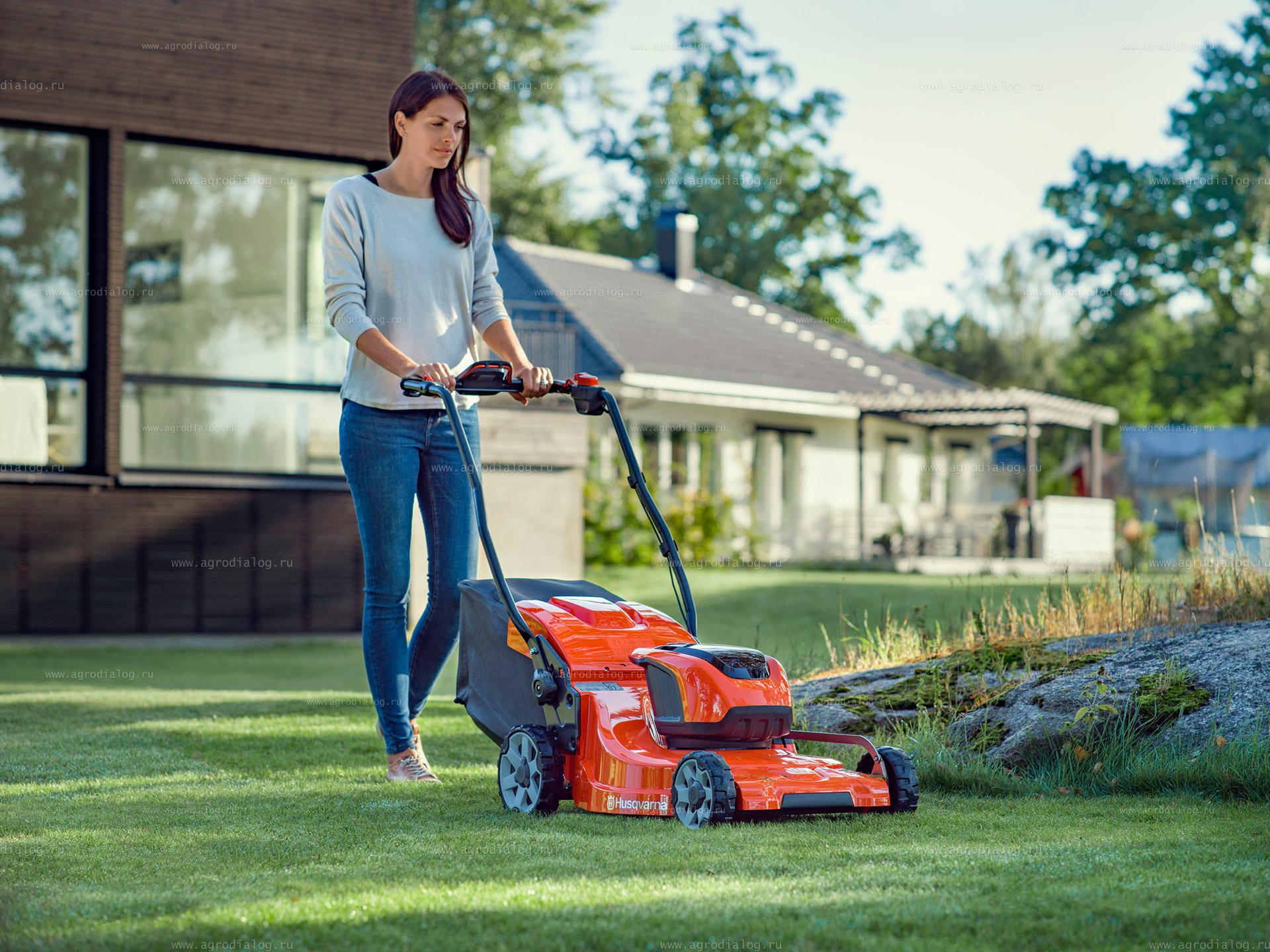 - Задний выброс без травосборника идеален при скашивании высокой травы.