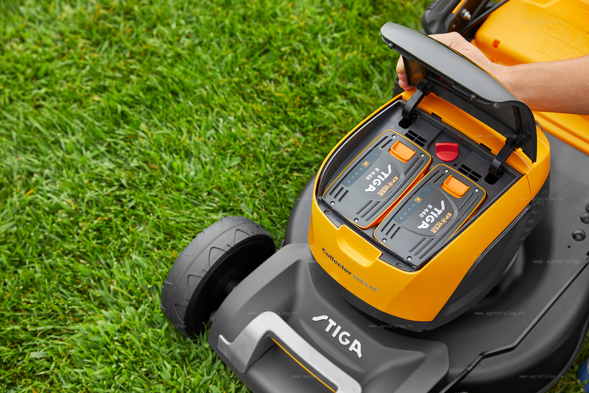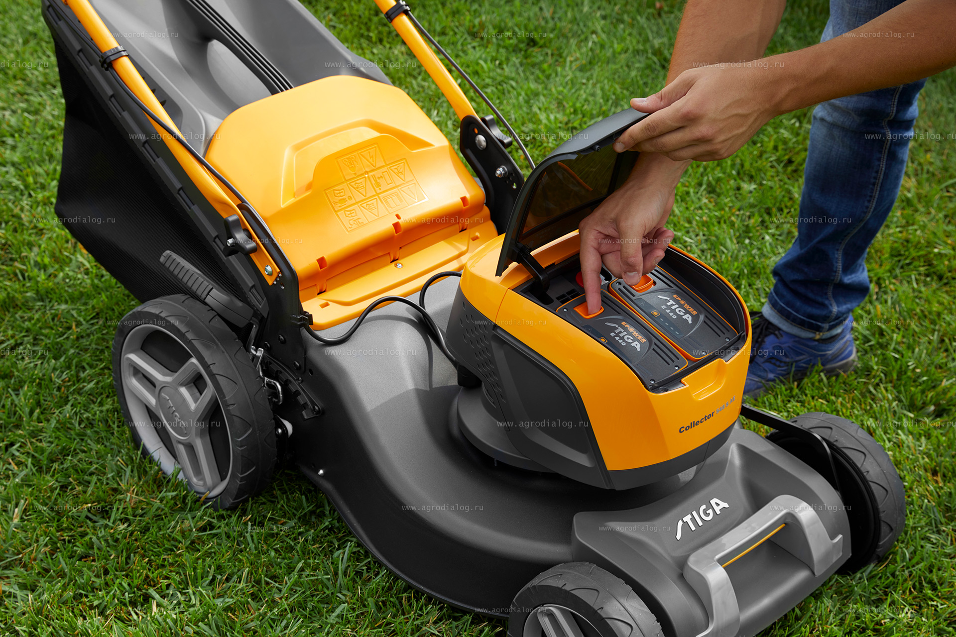 - Аккумулятор подходит ко всем инструментам 500, 700 и 900 серии – ножницы, коса, пила, садовая воздуходувка и, конечно, самоходная аккумуляторная газонокосилка Stiga Collector 548 S AE Kit. Один аккумулятор и одно зарядное устройство для пяти групп инструментов – это рационально и эффективно.